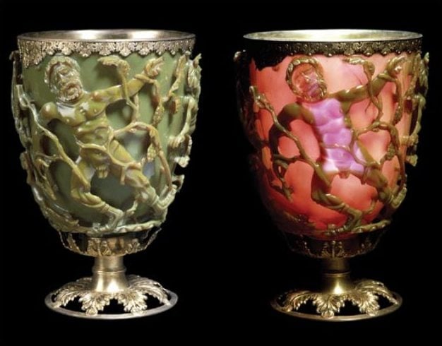 Na pierwszy rzut oka to po prostu efektowny rzymski kielich z IV wieku. Problem w tym, że Puchar Likurga zmienia kolor. W świetle odbitym wydaje się zielonkawy, a gdy światło przechodzi przez szkło, staje się czerwony. Dziś wiemy, że efekt wynika z obecności drobnych cząstek metali w szkle. Brzmi to niemal jak opis materiału projektowanego w nowoczesnym laboratorium.