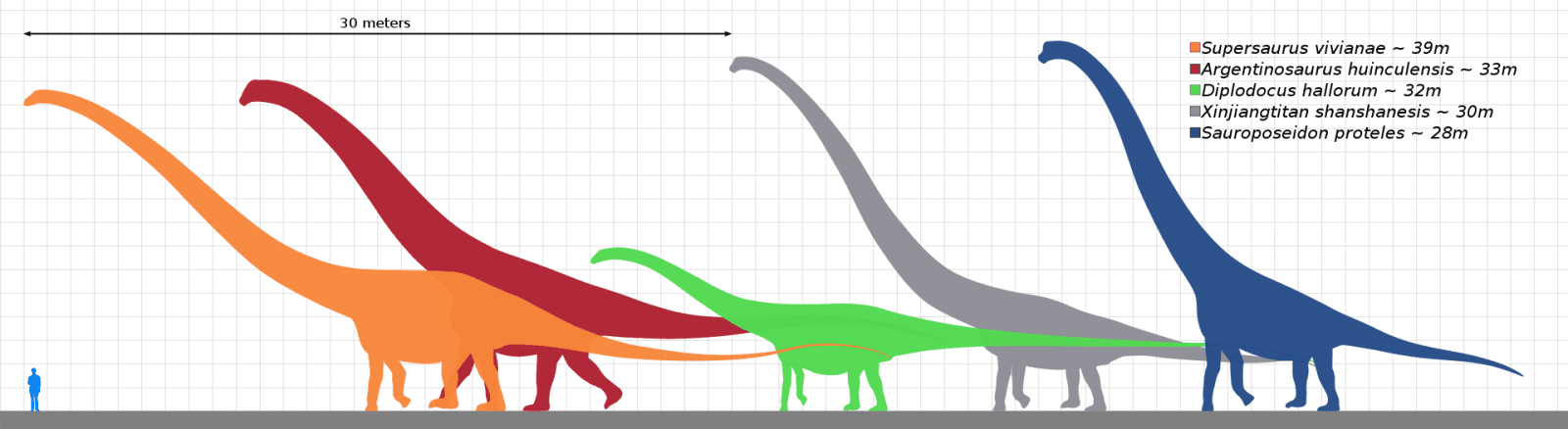 W świecie nauki trwają ciągłe dyskusje na tym, który dinozaur był największy w historii. Za największego przedstawiciela tego kladu, którego mamy kompletny szkielet zachowany w dobrym stanie kopalnym, uznaje się Giraffatitan brancai z rodzaju roślinożernych brachiozaurów. Jego wysokość wynosi 12 metrów, a długość ciała 22,5 metra. Dokładne wyliczenia wskazują, że mógł ważyć 39 ton. Jednak ten osobnik przegrywa z kretesem, jeśli w zestawieniu uwzględnimy także skamieniałości składające się z pojedynczych kości. Wówczas na podstawie obliczeń i modeli dowiadujemy się, że diplodok (Diplodocus) dorastał długością do 33,5 metra, a superzaur (Supersaurus) do 33 metrów. Zauroposejdon (Sauroposeidon) natomiast wygrywał wzrostem, ponieważ sięgał swoim pyskiem aż na wysokość 6. piętra (prawie 13 metrów).