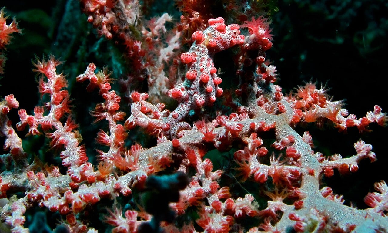 Ten gatunek morskiej ryby przez lata pozostawał niezauważony przez naukowców – dosłownie. Został odkryty dopiero w latach 70., ponieważ jego ciało idealnie imituje polipy gorgonii, na których żyje. Kolor, kształt i wypustki skóry są niemal identyczne jak u koralowca.