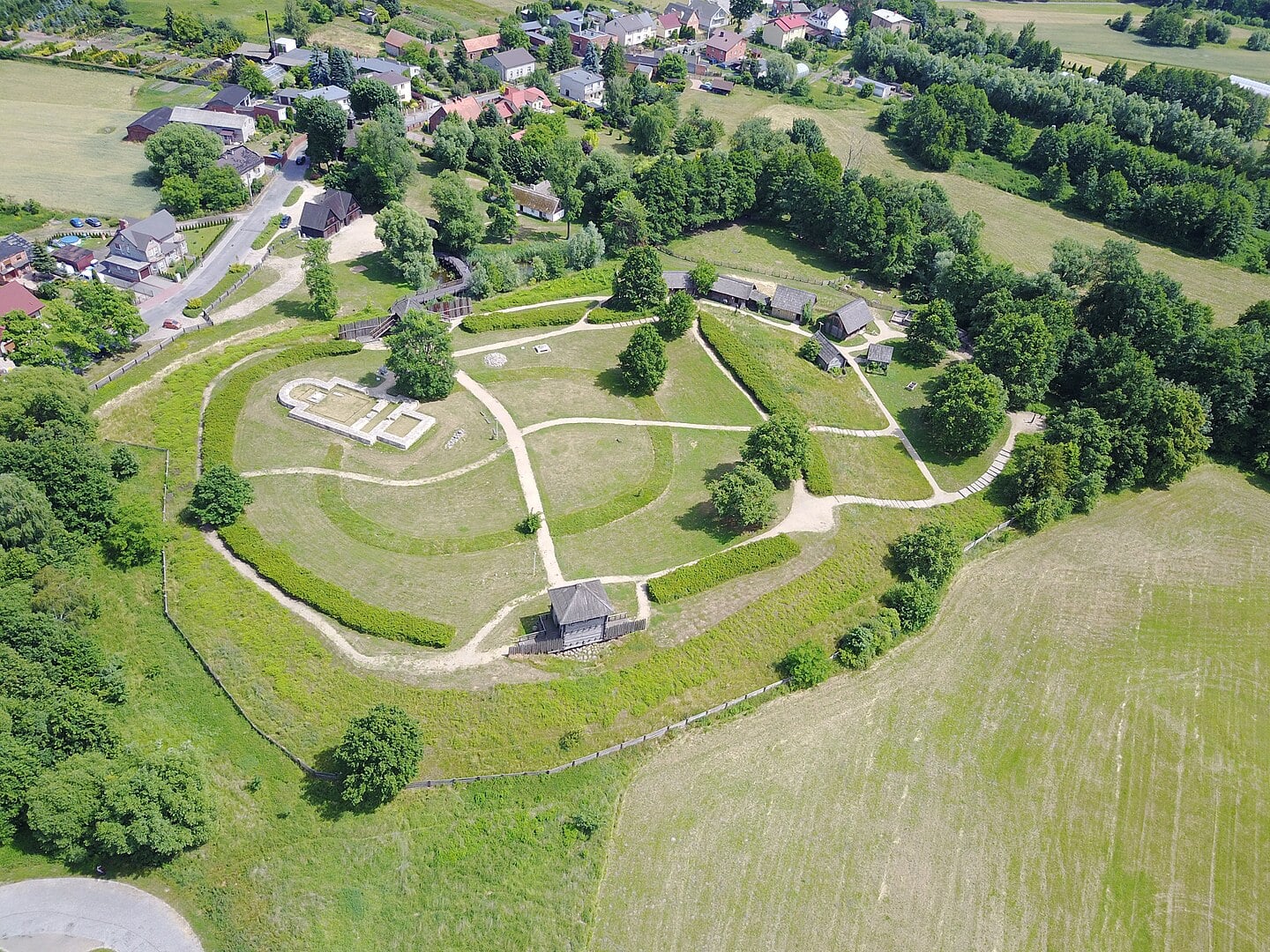 Jeśli mielibyśmy wskazać najstarszy tego typu ośrodek, to zapewne byłby to znajdujący się w powiecie żnińskim słynny Biskupin. Ślady pradawnego grodu na wyspie otoczonej wodami jeziorami Biskupińskiego odkryto przypadkowo w 1933 roku, kiedy poziom wód w zbiorniku znacząco się obniżył. Pierwszą osobą, która nagłośniła sprawę, był miejscowy nauczyciel Walenty Szwajcer.