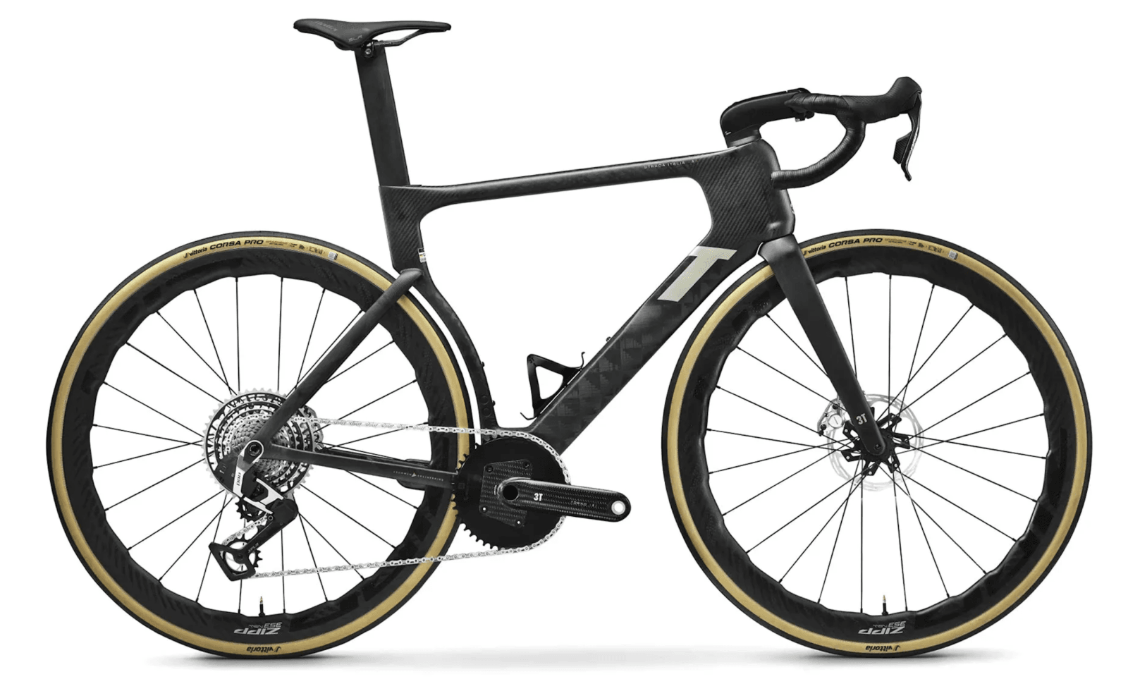 Nowy 3T Strada Italia wyposażony w topowy SRAM Red AXS XPLR, oferuje 13-biegową kasetę 10-46T, która zapewnia płynność zmiany przełożeń i wystarczający zakres, by sprostać różnorodnym trasom. Rama roweru została wykonana z ulepszonego karbonu, którego projekt oparto na zaawansowanej aerodynamice, minimalizując opór powietrza i poprawiając osiągi.