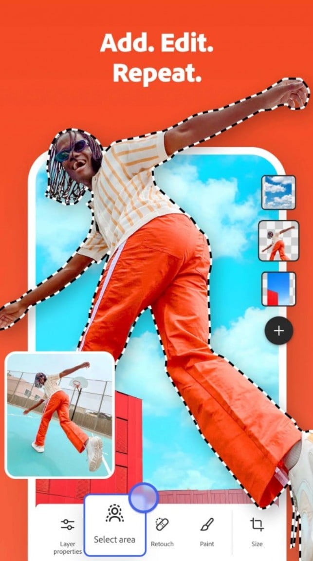 Mobilny Photoshop zawiera wiele znanych narzędzi do edycji, z których słynie desktopowa wersja, jak warstwy, maski i selekcje. Oprócz tego, oferuje również narzędzia zoptymalizowane pod kątem doświadczenia mobilnego.