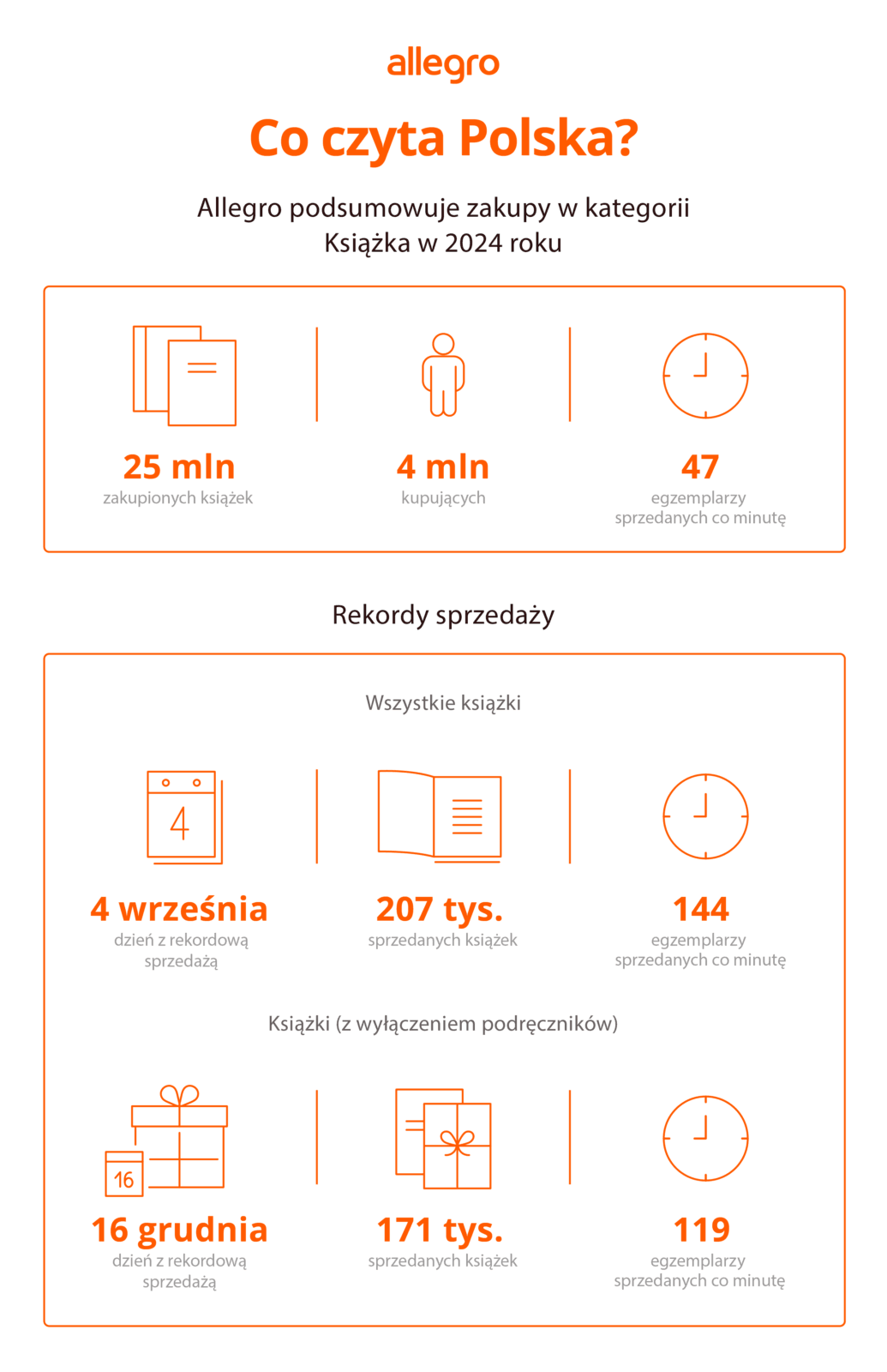 W 2024 roku Polacy pokazali, że wbrew pozorom miłość do książek wciąż ma się dobrze. Według danych Allegro, na platformie sprzedano aż 25 milionów egzemplarzy — to średnio 47 książek na minutę! Czytelnictwo w Polsce, jak wynika z raportu Biblioteki Narodowej, ustabilizowało się na poziomie 41%, a prawdziwymi entuzjastami literatury są młodzi w wieku 15–18 lat, wśród których aż 54% sięga po książki. Allegro, będące jednym z kluczowych miejsc dla miłośników czytania, zapewnia propozycje na każde gusta.