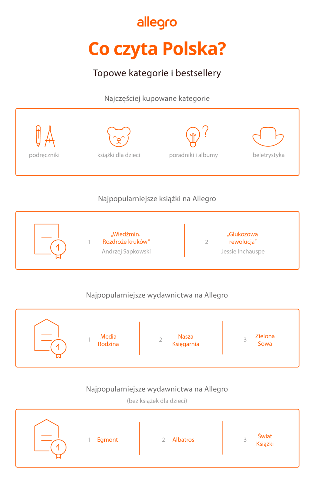 Z 4 milionami użytkowników kupujących książki, Allegro pozostaje kluczowym elementem w dostarczaniu literatury Polakom. Platforma łączy atrakcyjne ceny, szeroki wybór i wygodne rozwiązania, takie jak Allegro Smart!. Niezależnie od tego, czy szukamy najnowszego „Wiedźmina”, mangi dla nastolatka, czy książeczki dla malucha, Allegro ma wszystko, czego potrzebujemy, by zaspokoić jakże ważny głód czytania. Nowości w kategorii Książki na Allegro możecie znaleźć tutaj.