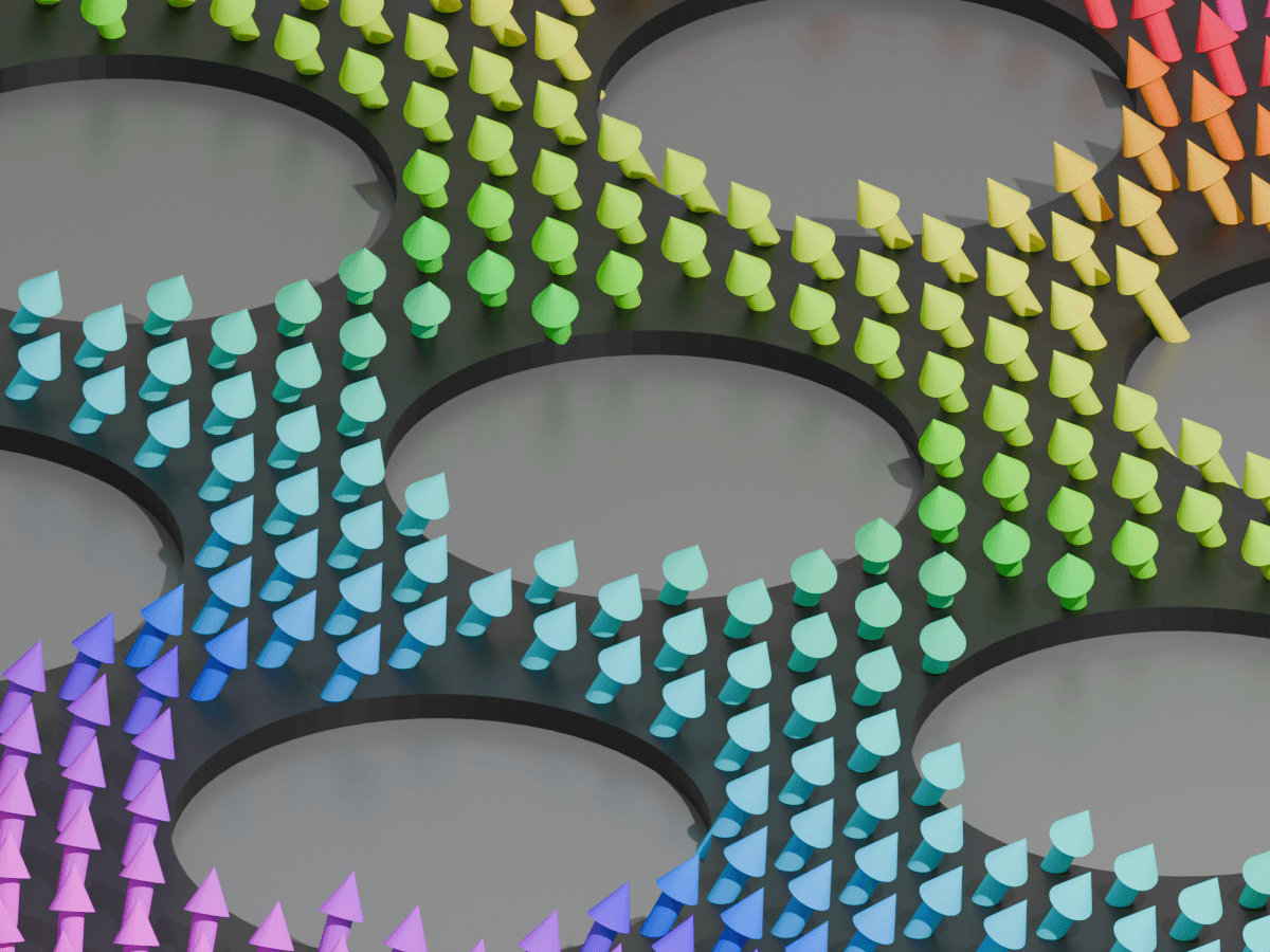 Zespół zamodelował cienką warstwę magnetyczną z maleńkimi otworami ułożonymi w heksagonalny wzór. Sam układ brzmi znajomo, bo heksagonalna siatka jest jednym z powodów, dla których grafen zachowuje się tak nietypowo. W tym sztucznie uporządkowanym materiale fale spinowe zaczęły układać się energetycznie w sposób bardzo bliski temu, co fizycy znają z elektronów w grafenie.