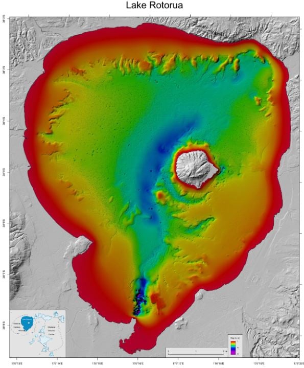 Naukowcy z nowozelandzkiego instytutu GNS Science przeprowadzili szczegółowe mapowanie zbiornika, które miało na celu poznanie nie tylko rzeźby dna jeziora, ale również odkrycie ewentualnych zaburzeń i nieznanych dotąd zjawisk. Skanowanie akwenu obejmowało ponad dwie trzecie jego powierzchni i sięgało wszędzie tam, gdzie słup wody wynosił przynajmniej 5 metrów.