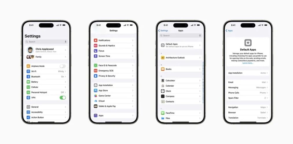 W iPadOS 18 i iOS 18 pojawi się także nowa sekcja Domyślne aplikacje w Ustawieniach. Znajdzie się tam lista wszystkich domyślnych aplikacji dostępnych dla użytkowników. Gigant z Cupertino twierdzi, że w przyszłych aplikacjach pojawią się nowe domyślne ustawienia wybierania numerów telefonów, wysyłania wiadomości, nawigacji, zarządzania hasłami, tłumaczenia tekstu, zarządzania klawiaturami czy filtrami spamu. Na tym jednak nie koniec.