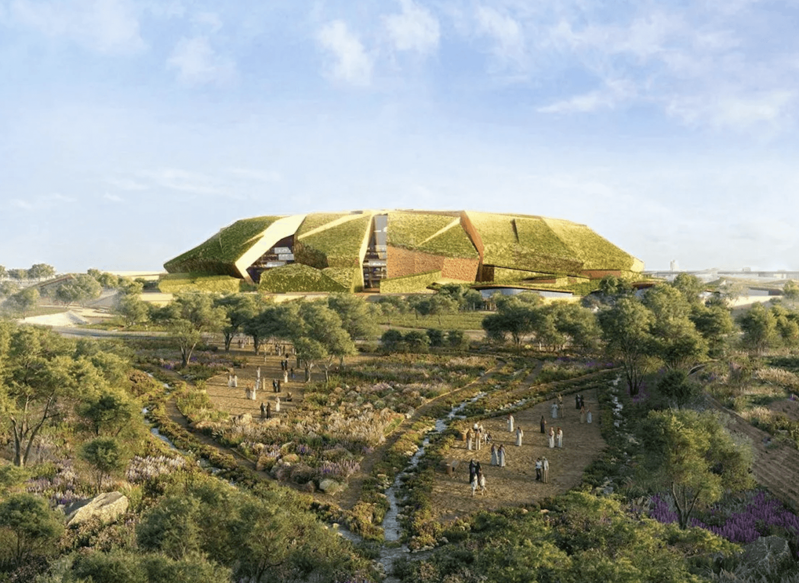 Projekt zakłada integrację stadionu z otaczającą go zielenią – zielone dachy i ściany stworzą spójną całość z pobliskimi terenami parkowymi. Dodatkowo, 9-kilometrowa ścieżka sportowa połączy wszystkie obiekty z Parkiem Króla Abdulaziza, czyniąc kompleks miejscem tętniącym życiem przez cały rok.