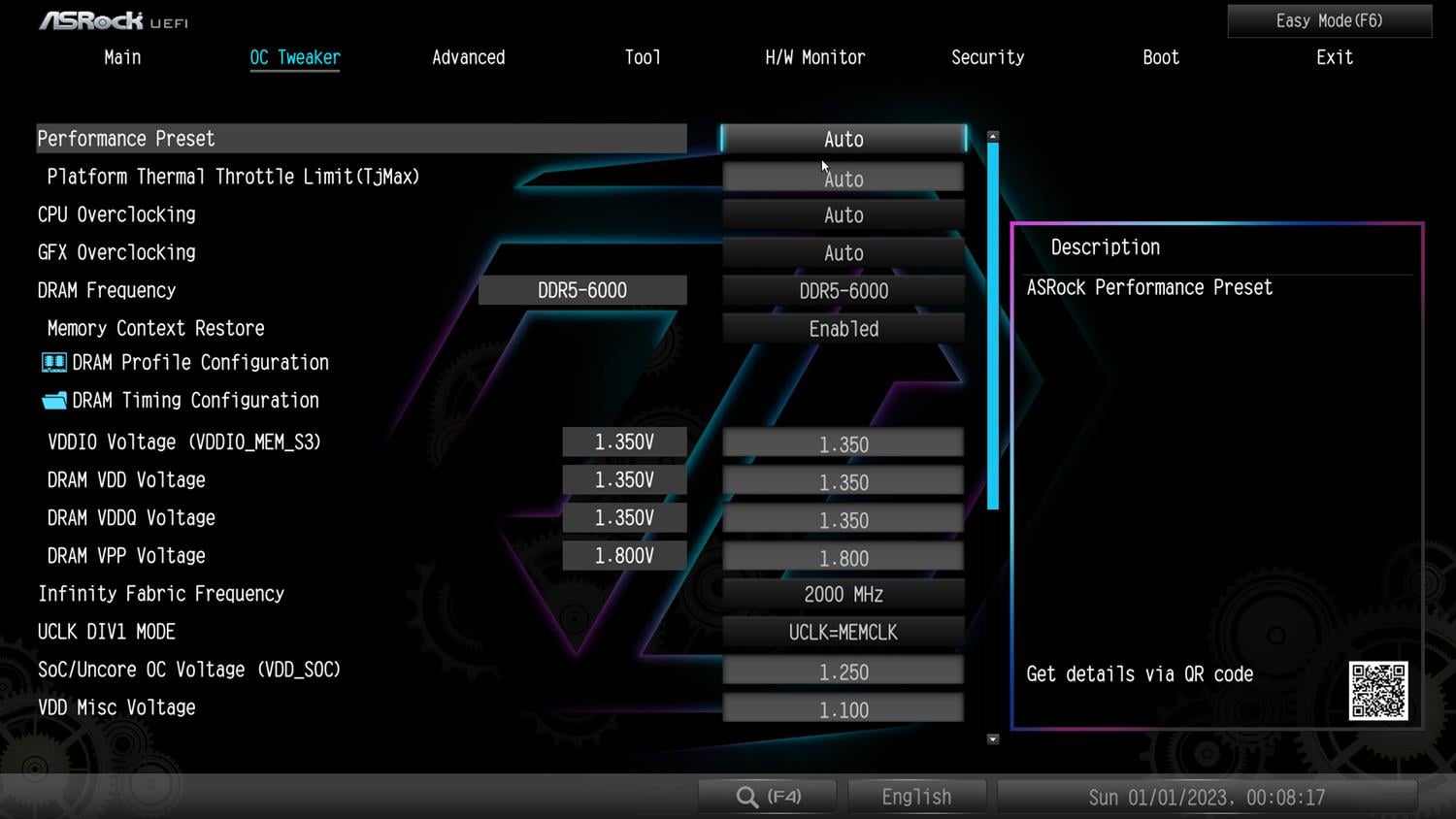 ASRock wreszcie wprowadził tryb Easy dla płyt AMD. Można więc łatwo ustawić choćby profil EXPO. Pozostałe opcje są poukładane w odpowiednich zakładkach. Nie ma większych problemów z OC procesora, zmianą krzywej obroty wentylatorów czy znalezieniem interesującej funkcji. Jest więc dobrze i typowo dla producenta.