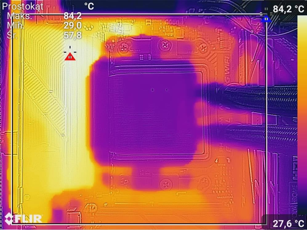 Sekcja mocniej się grzeje, a jeśli zamkniecie całość w obudowie ze słabym przepływem powietrza to będzie tylko gorzej. Samo 84,2°C to nie jest jeszcze bardzo wysoki wynik, ale dla bezpieczeństwa rzeczywiście lepiej wykorzystać procesor o niższym TDP (chyba, że zastosujecie chłodzenie z nawiewem na sekcję, ale wtedy musicie przetrwać ciągłe klikanie F1 przy starcie). Ja zdecydowałem się na przeprowadzenie testów z procesorem 7950X3D.