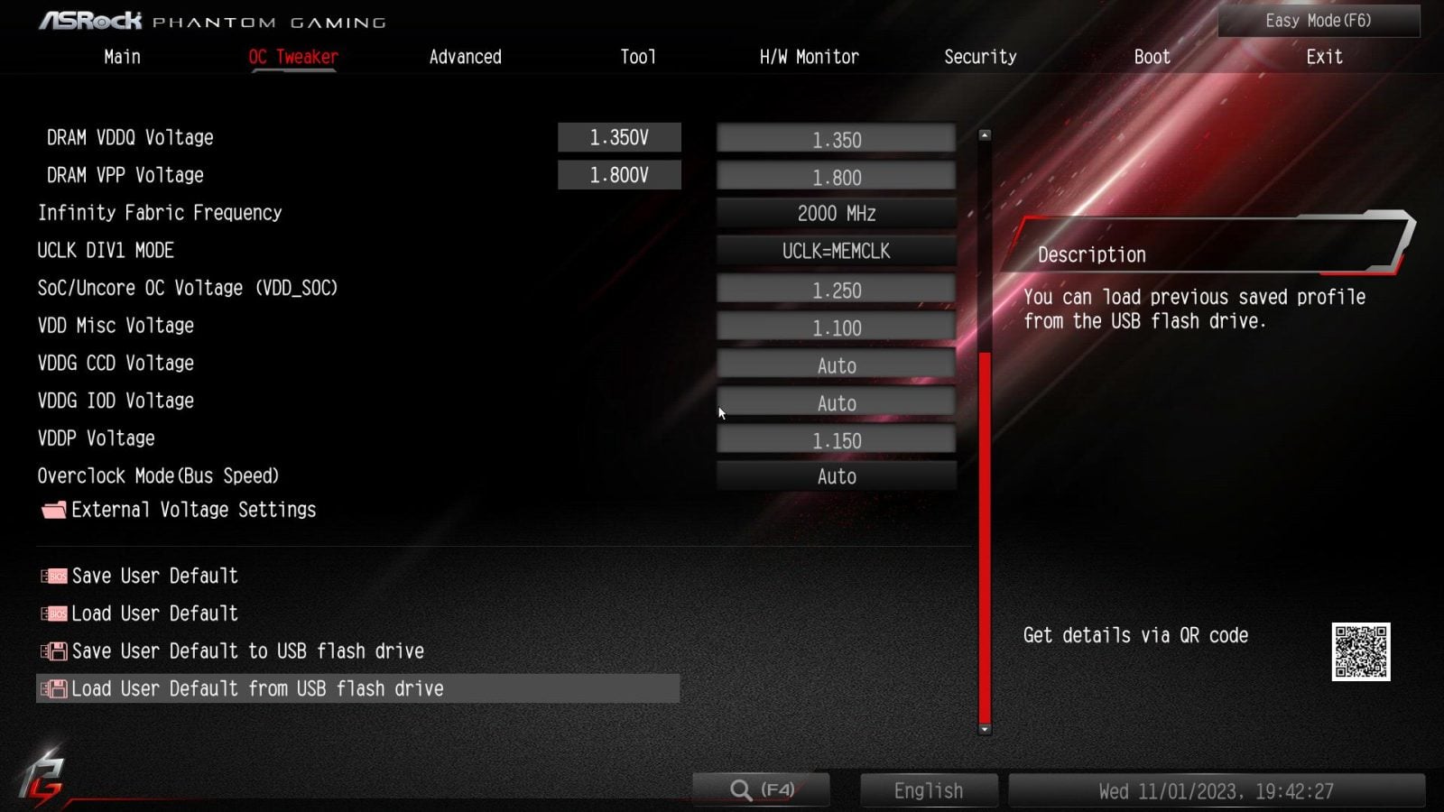 Testy wykonałem przy domyślnych ustawieniach BIOSu. Włączyłem tylko profil XMP pamięci, który zadziałał bez problemów i zmieniłem maksymalną temperaturę procesora. Porty USB testowałem na dysku Adata SE800 1 TB, SATA na Adata SU650 120 GB, a M.2 na Samsung 990 Pro 2TB.