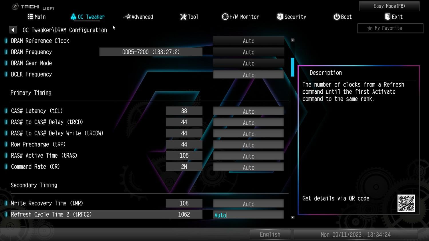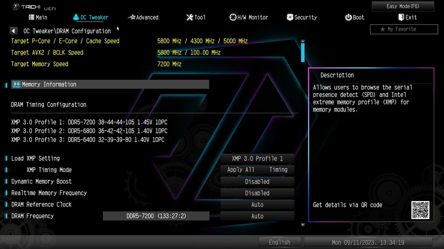 ASRock Z790 Tachi Lite ma cztery miejsca na pamięci DDR5. Możemy tutaj zmieścić 192 GB RAM o prędkości 7200 MHz. Całość ma wsparcie dla profili XMP i EXPO. Tutaj sprawdziłem działanie całości z redakcyjnymi pamięciami 7200 MHz i nie było żadnych problemów.