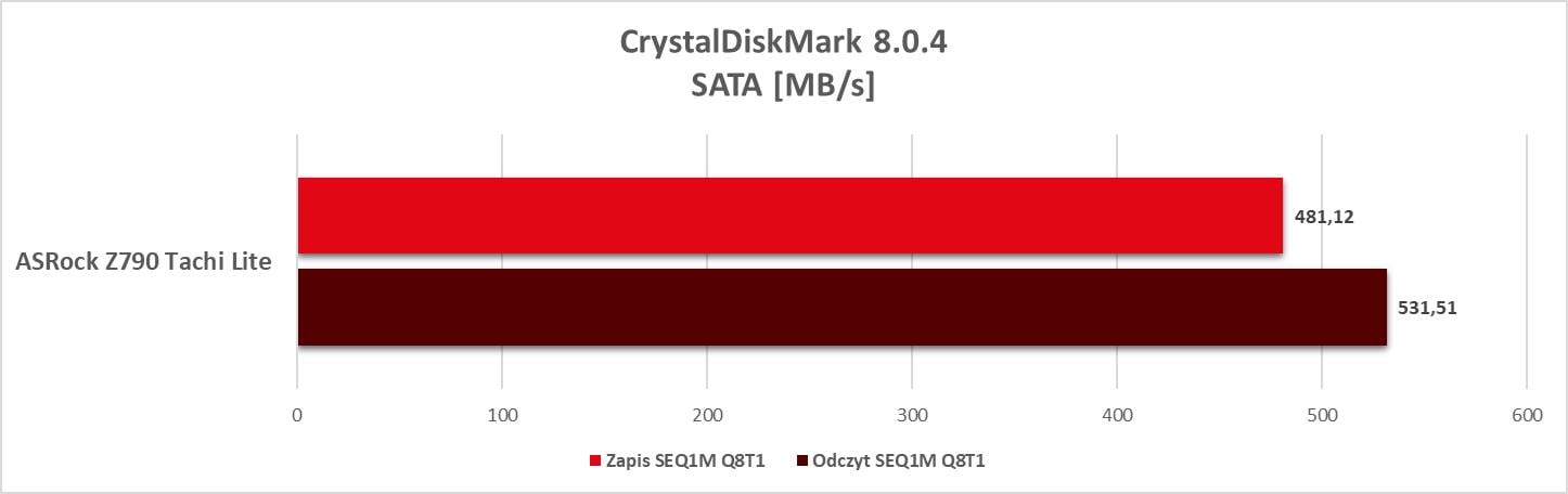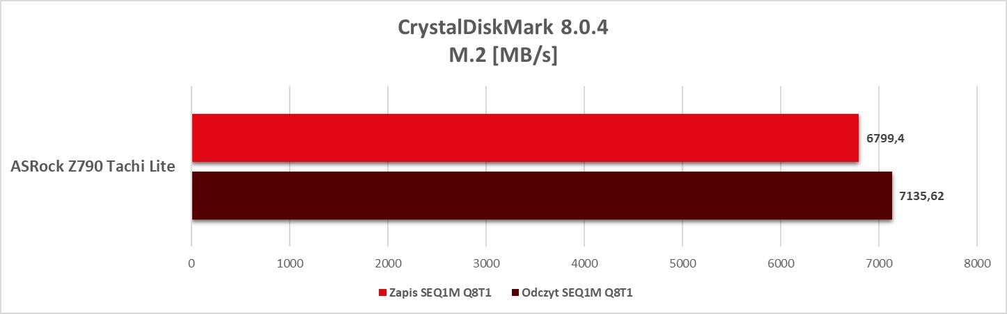 Wyniki są bardzo dobre i płyta w niczym nie ogranicza wydajności podzespołów. Możecie więc spokojnie oprzeć o nią najwydajniejszy zestaw i cieszyć się z wykorzystania pełni jego możliwości. Dodam tutaj, że dysk umieszczony pod największym radiatorem przy obciążeniu CrystalDiskMark uzyskał temperatury 55°C i 66°C. Są to ponownie bardzo dobre wyniki i dysk nie będzie się przegrzewał.