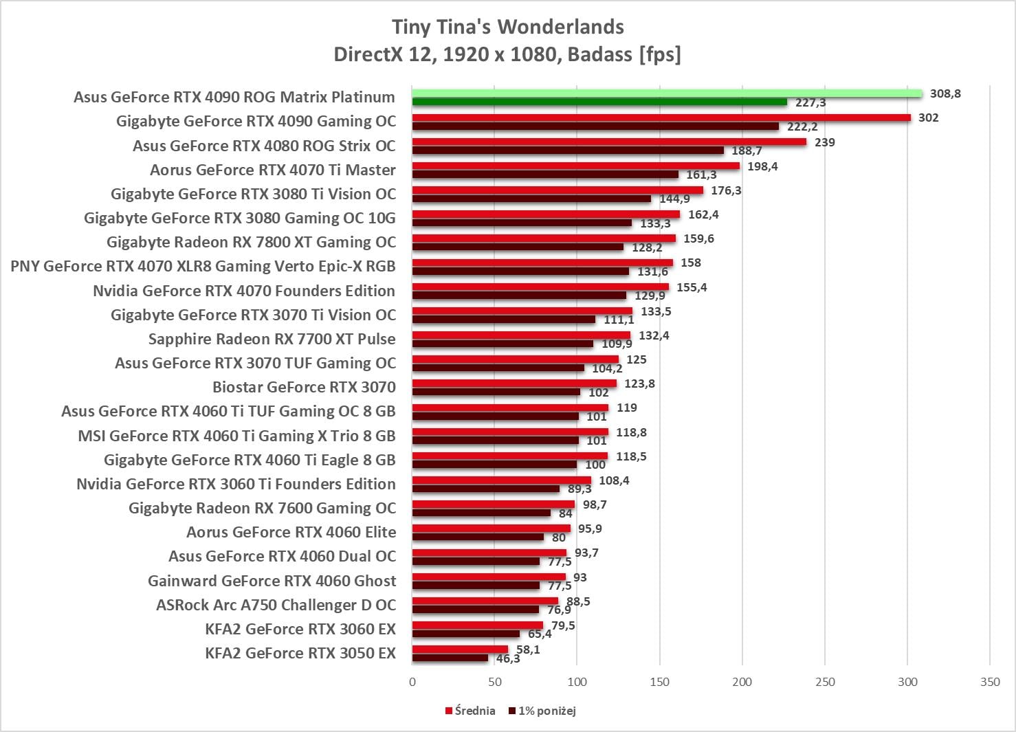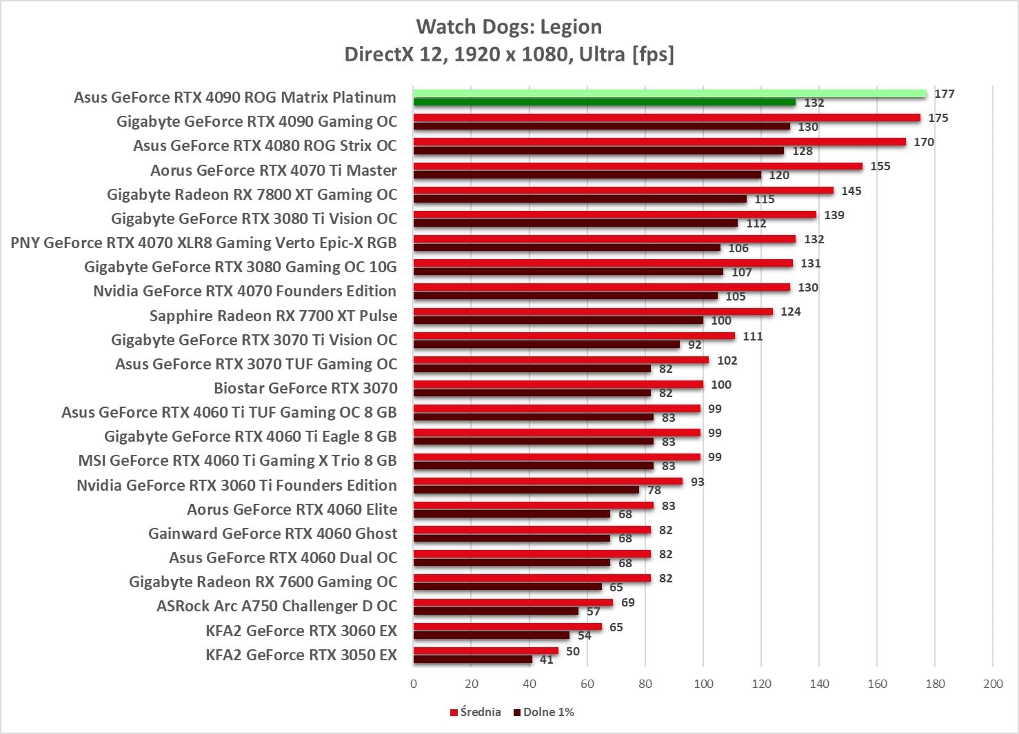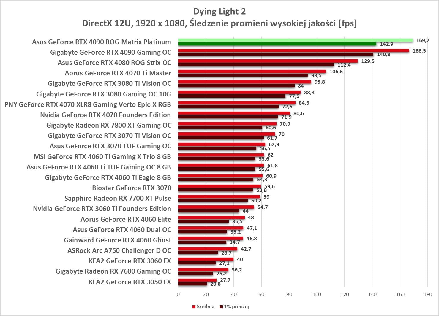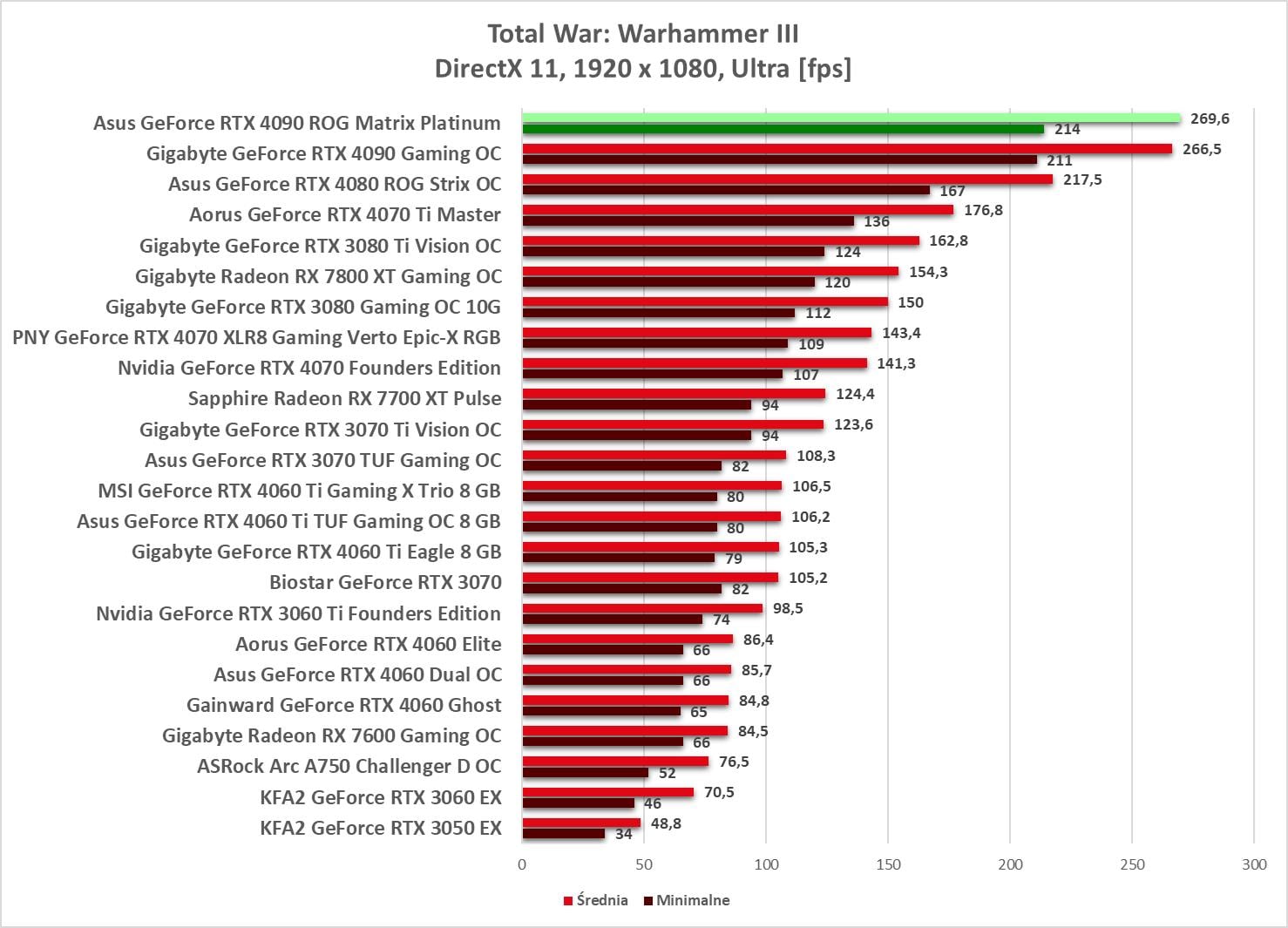 W 1920 x 1080 bez problemów możecie odpalać gry na maksymalnych ustawieniach. Wyniki są ponownie najwyższe spośród wszystkich kart obecnych na wykresach.