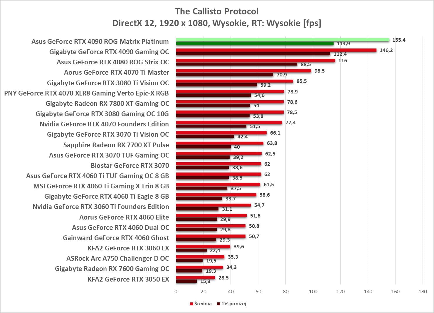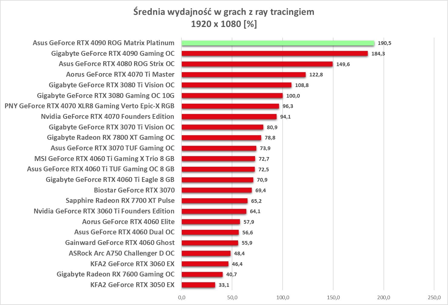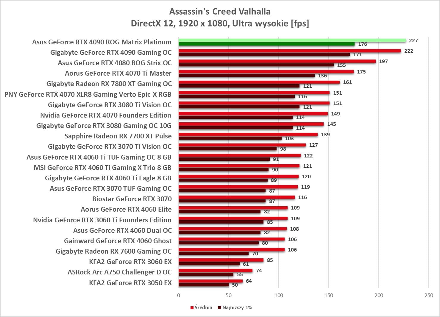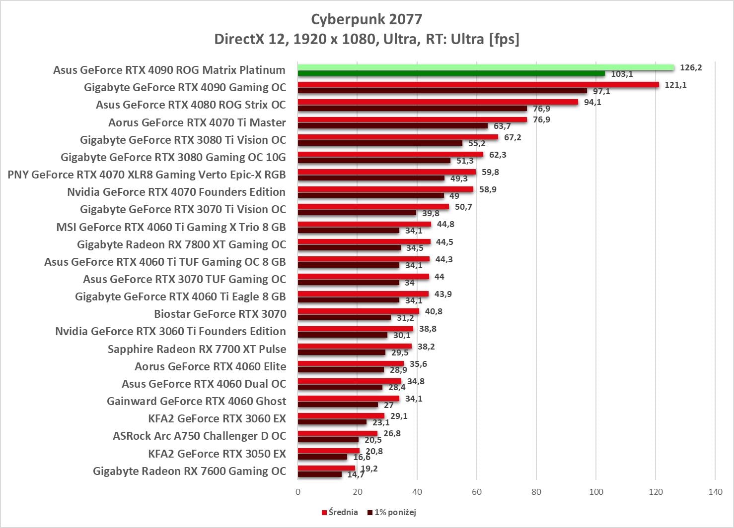 W 1920 x 1080 bez problemów możecie odpalać gry na maksymalnych ustawieniach. Wyniki są ponownie najwyższe spośród wszystkich kart obecnych na wykresach.