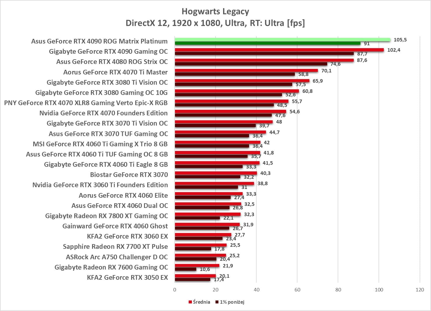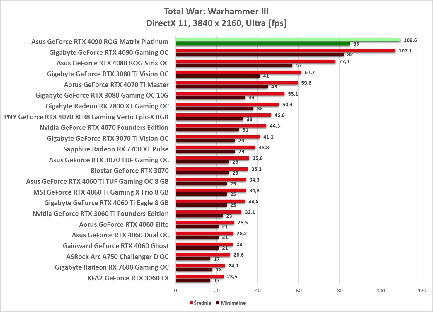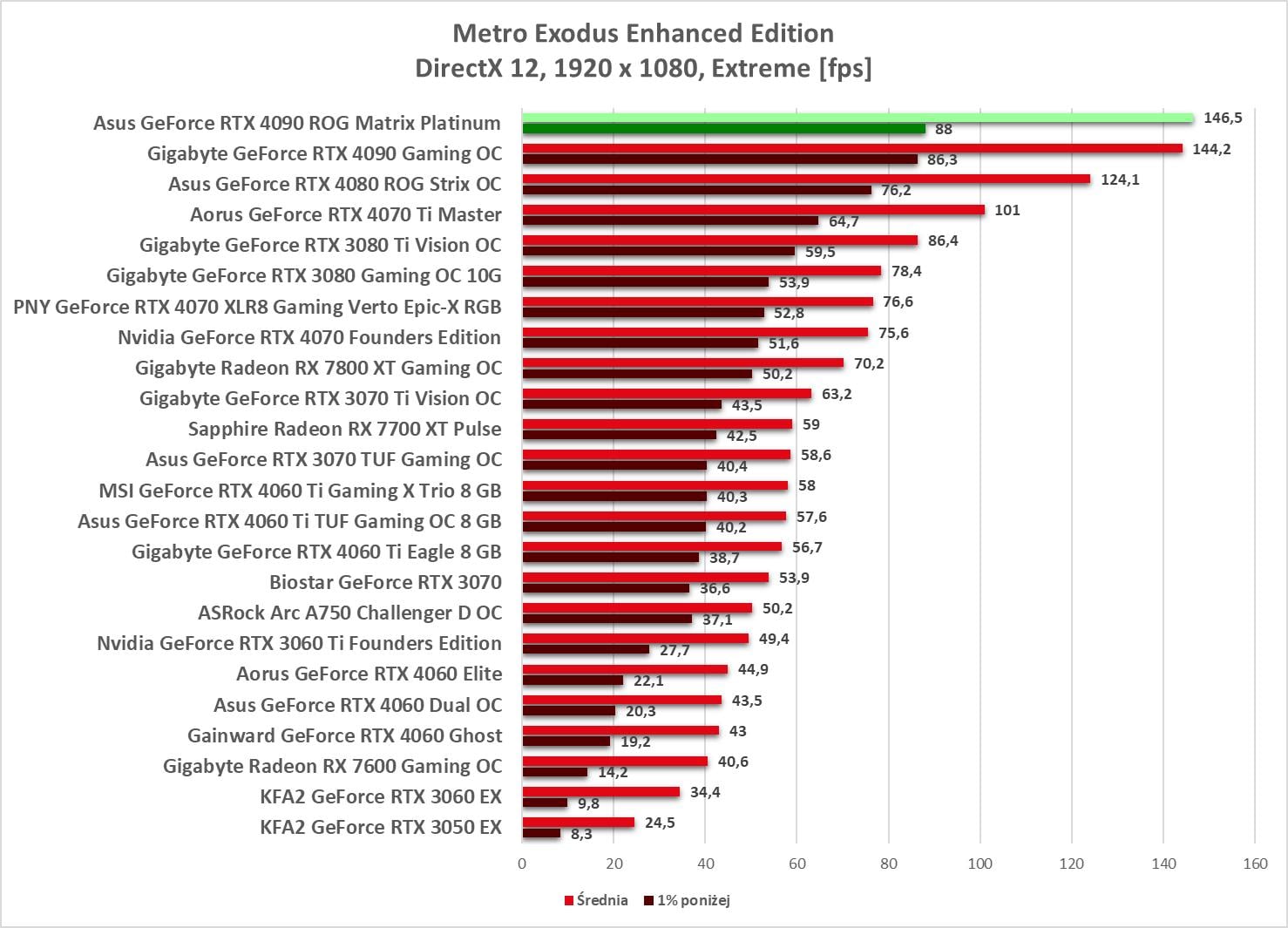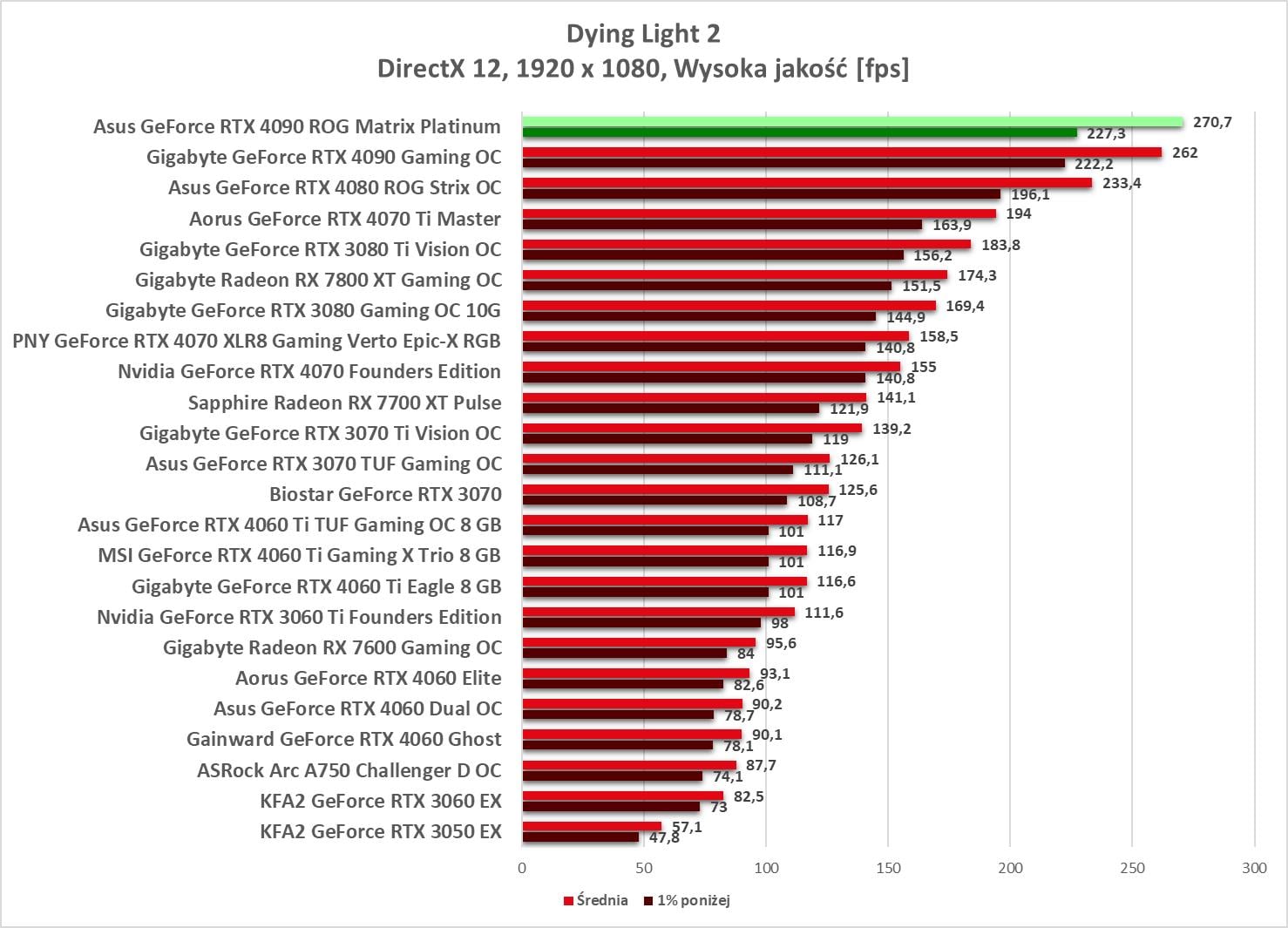 W 1920 x 1080 bez problemów możecie odpalać gry na maksymalnych ustawieniach. Wyniki są ponownie najwyższe spośród wszystkich kart obecnych na wykresach.