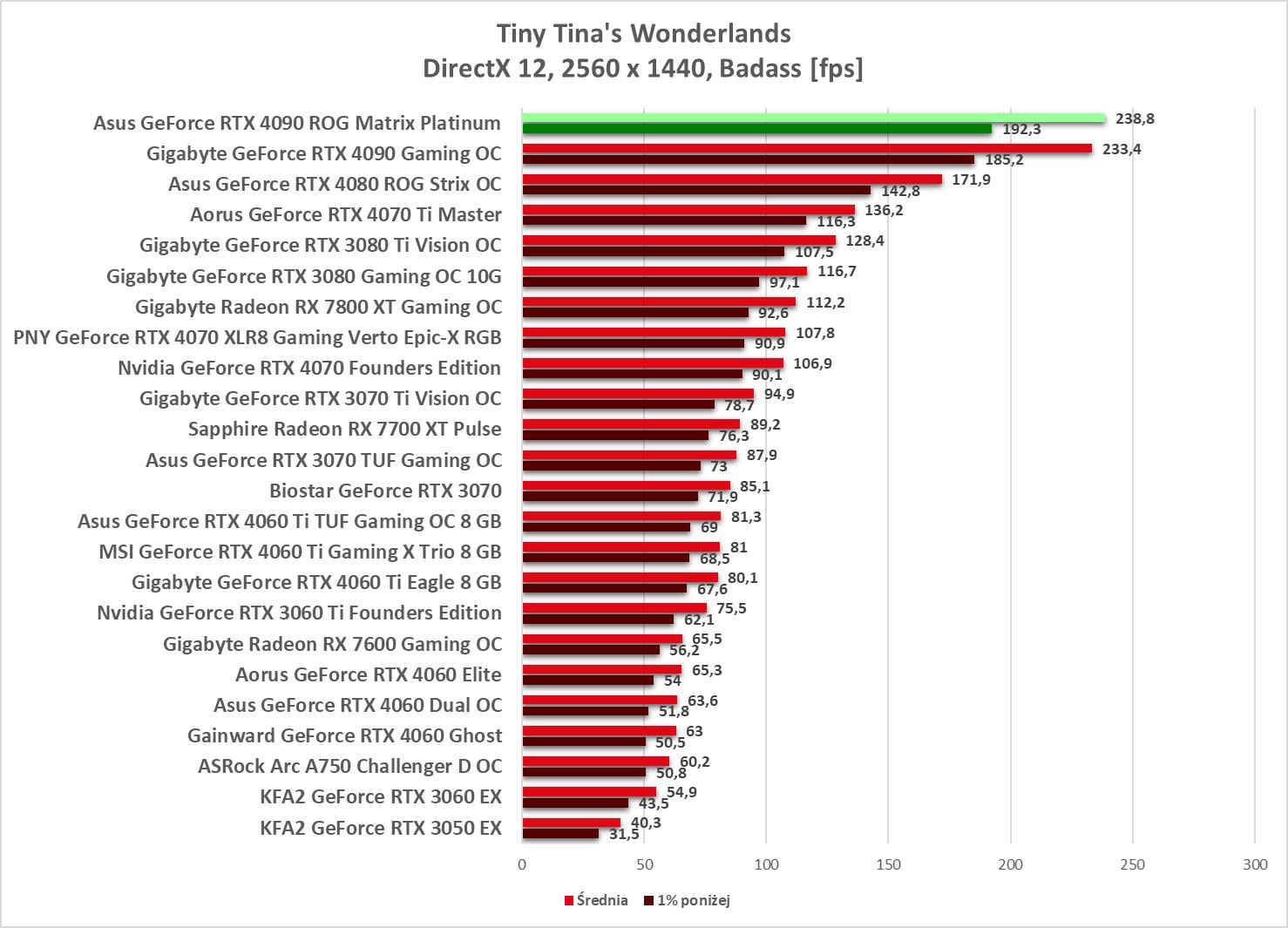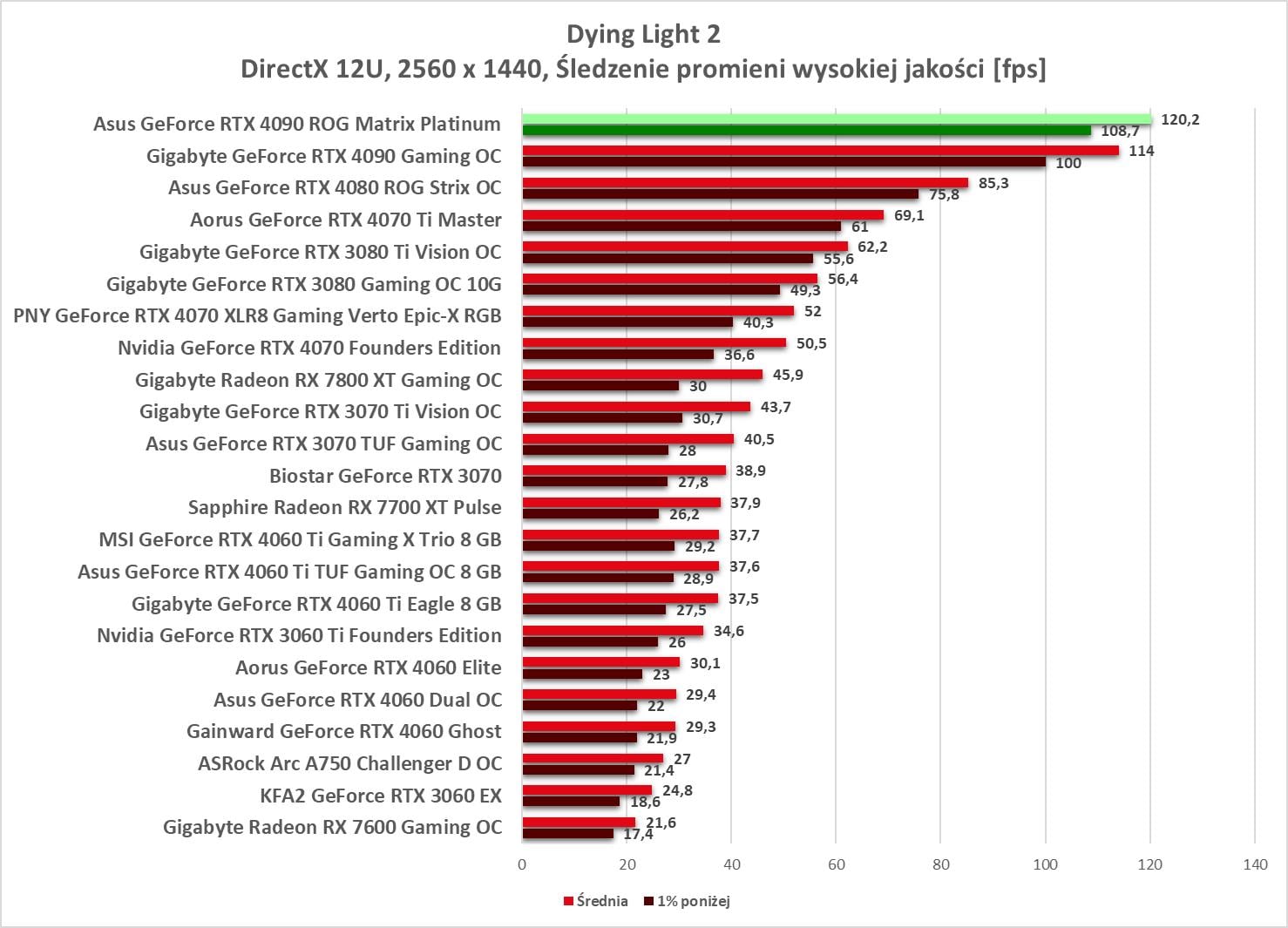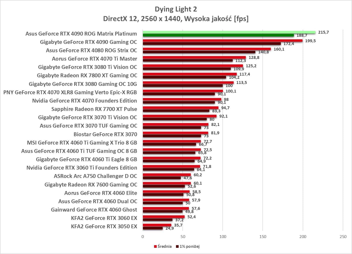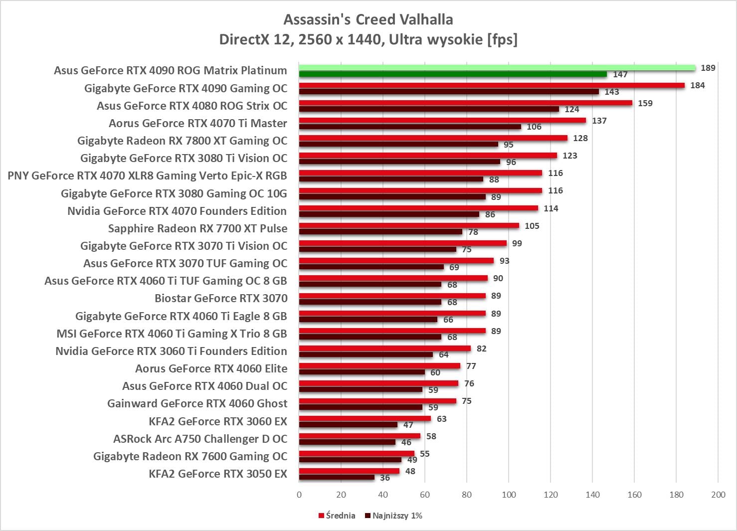 W 2560 x 1440 ponownie mamy we wszystkich grach średnio powyżej 60 fps.