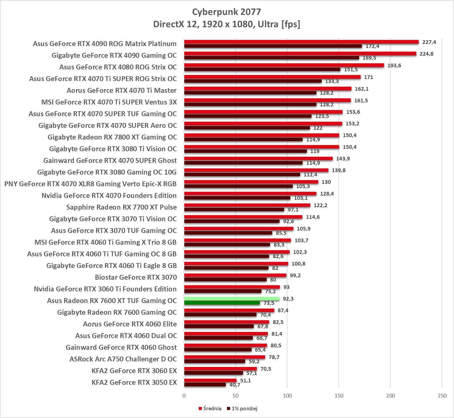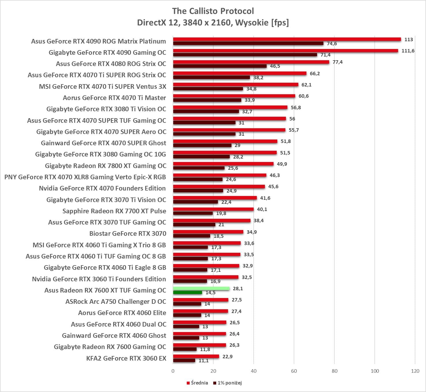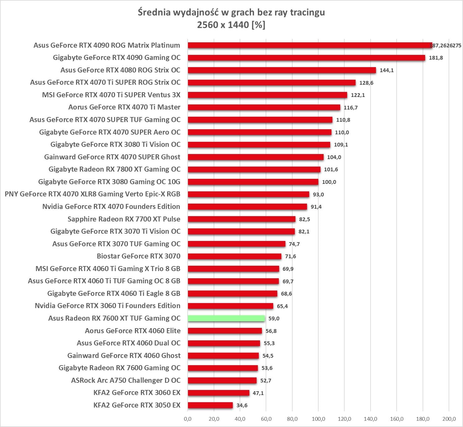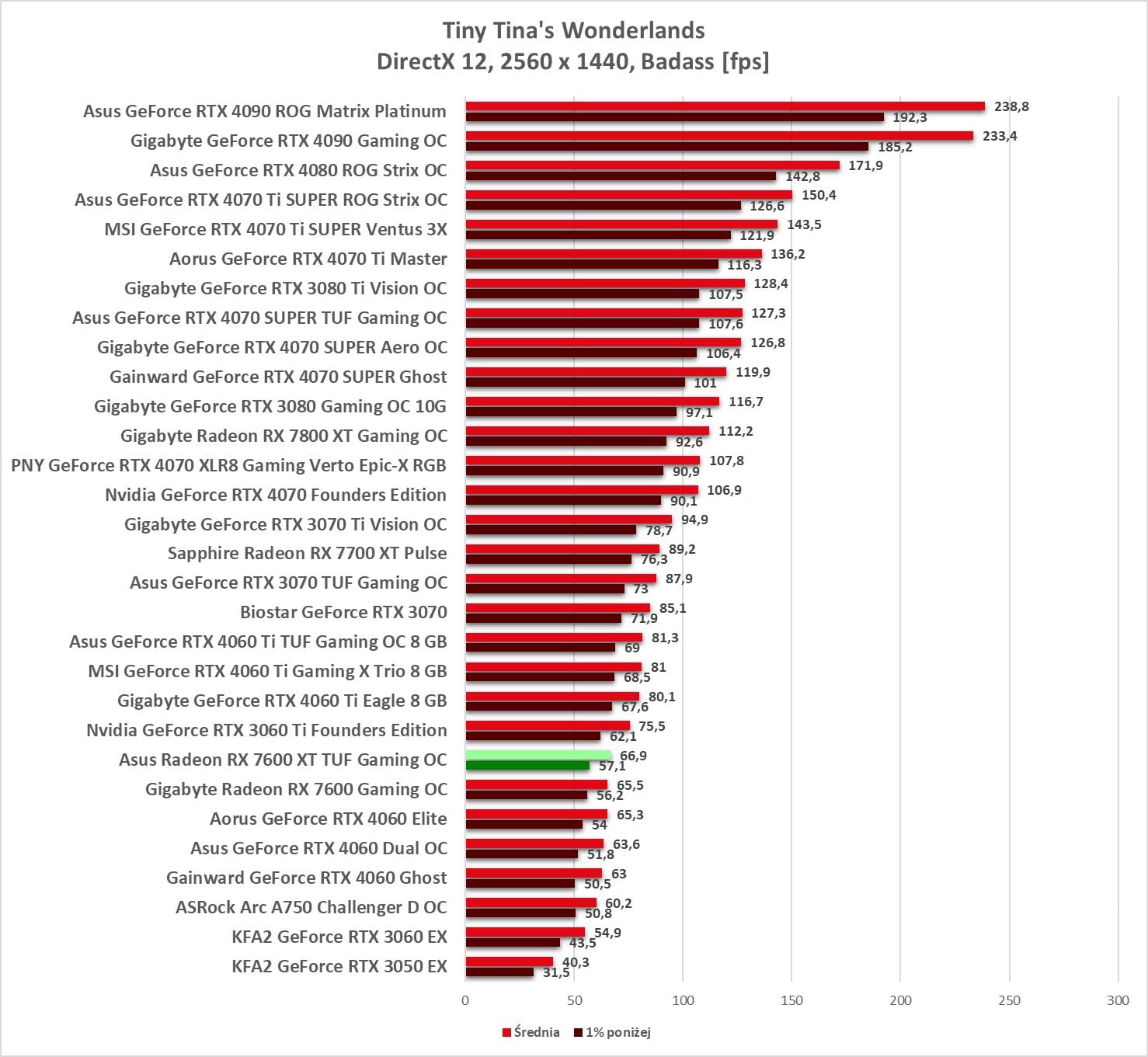 Test Asus Radeon RX 7600 XT TUF Gaming OC – podsumowanie