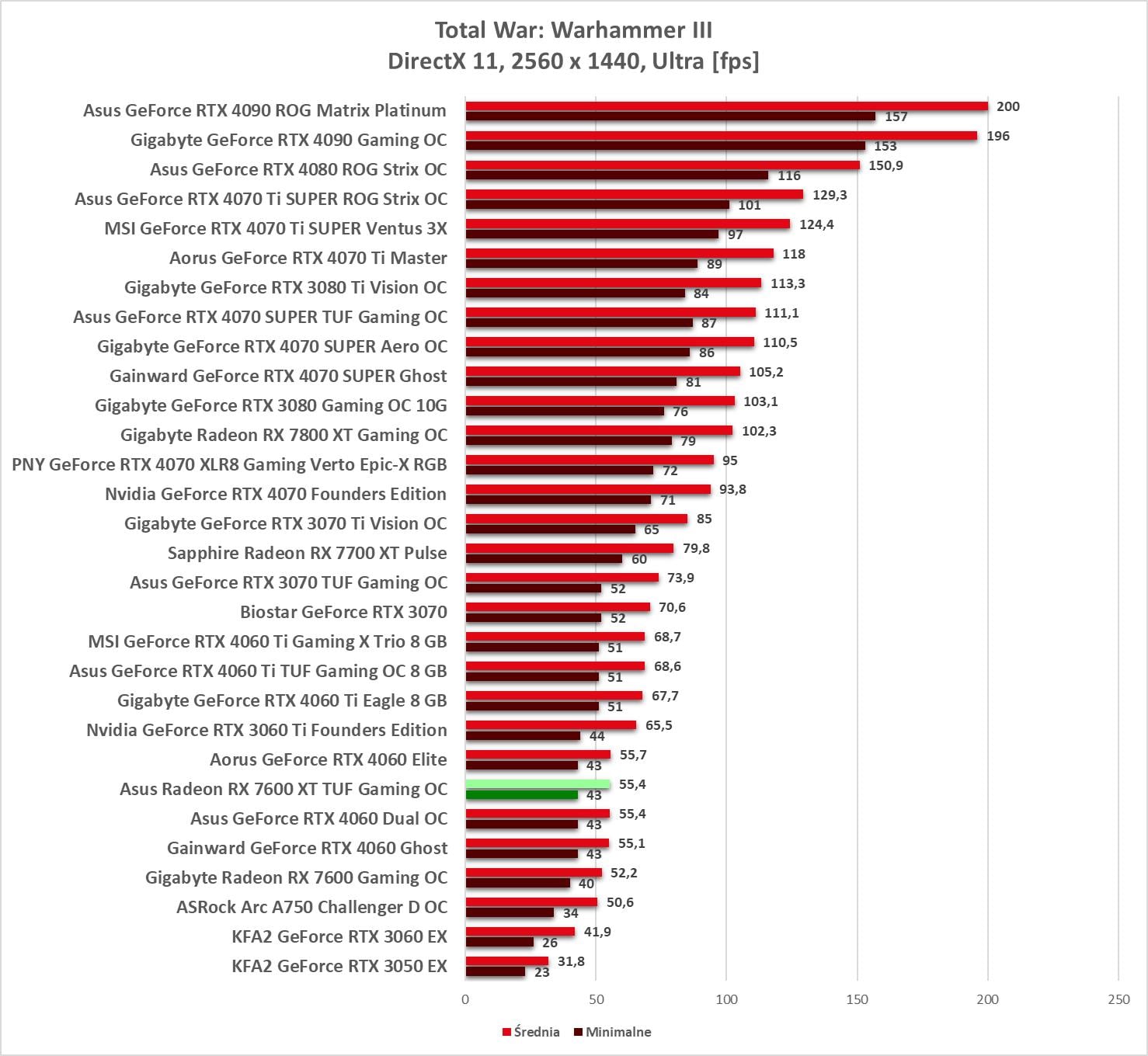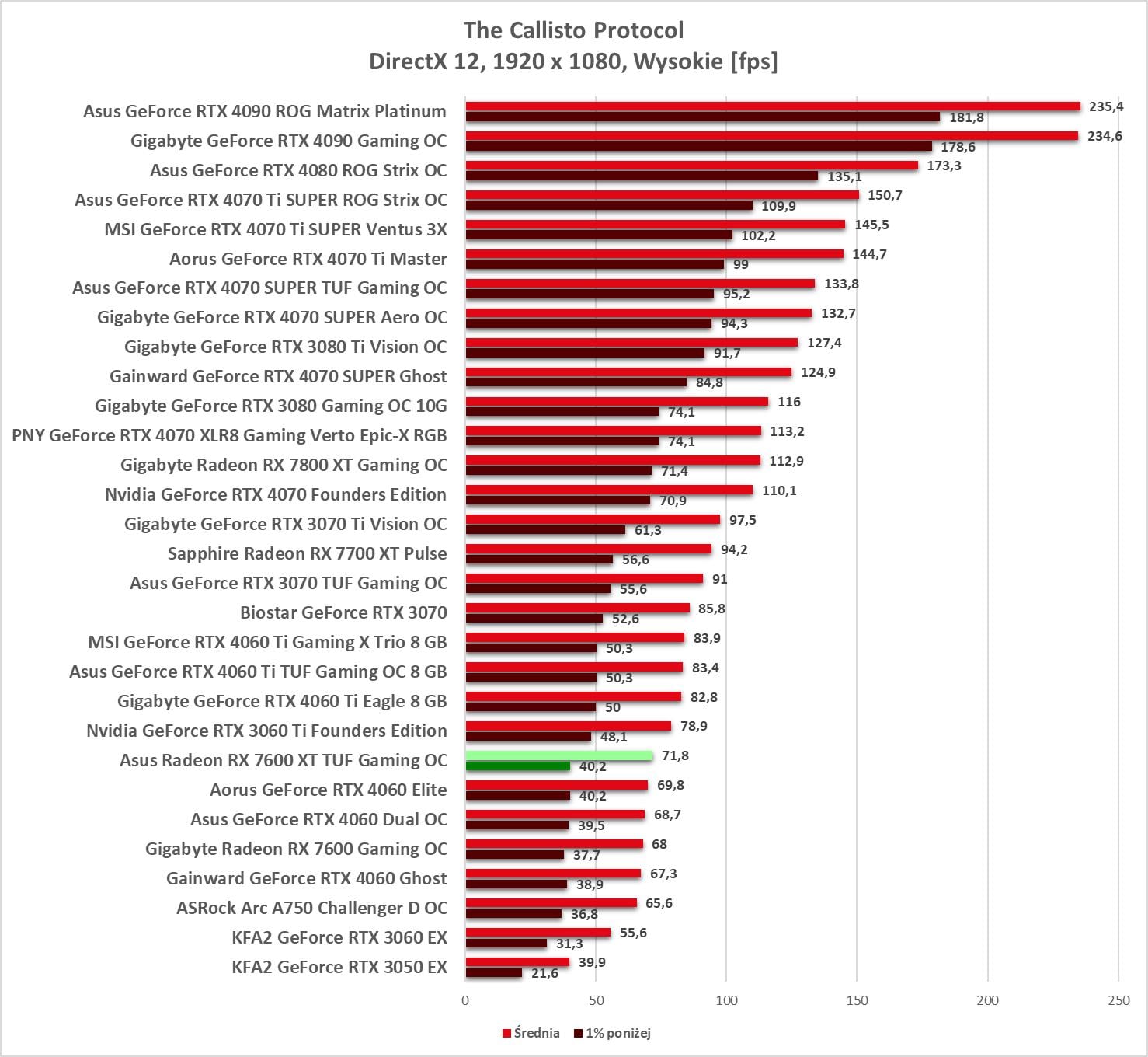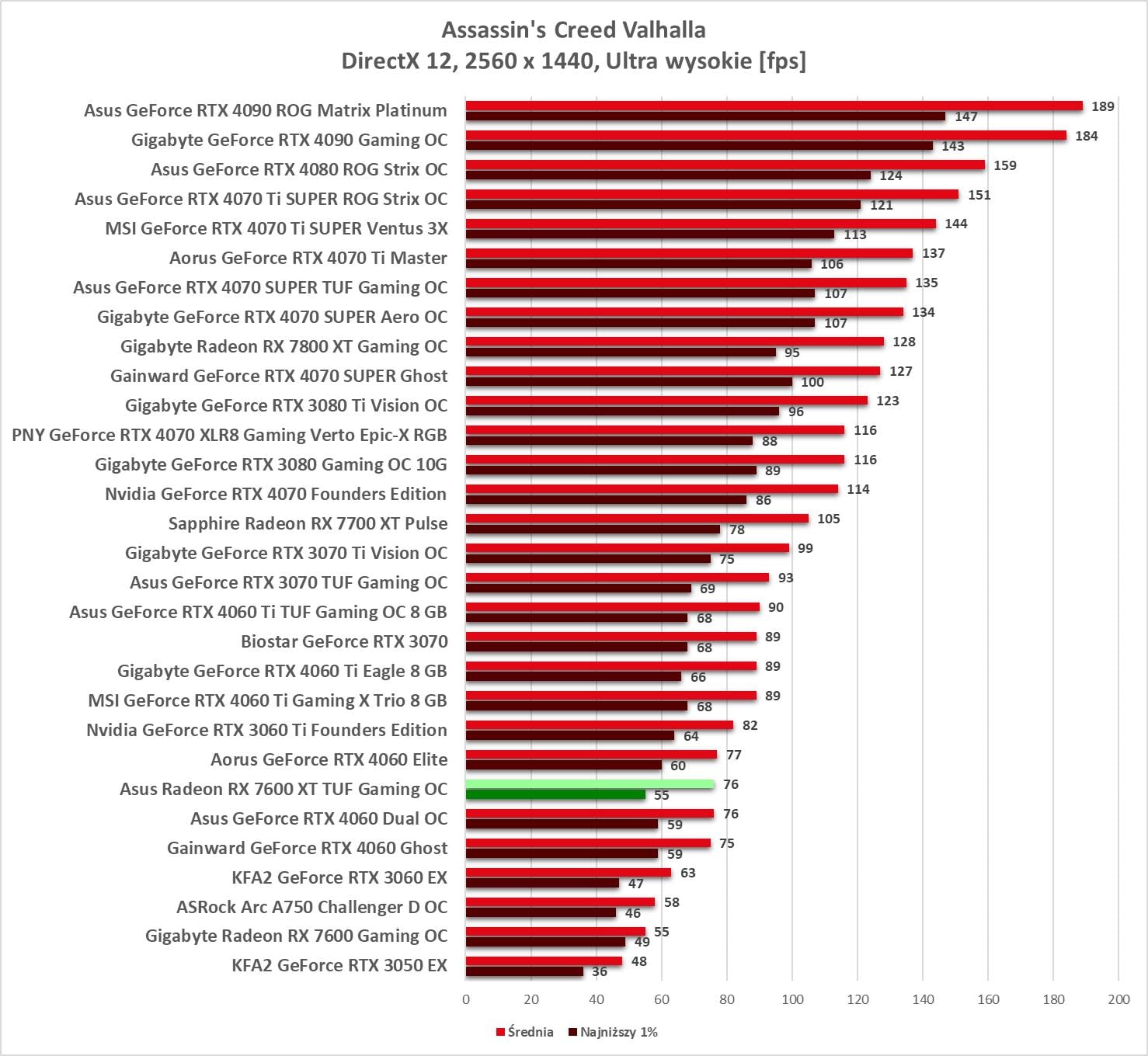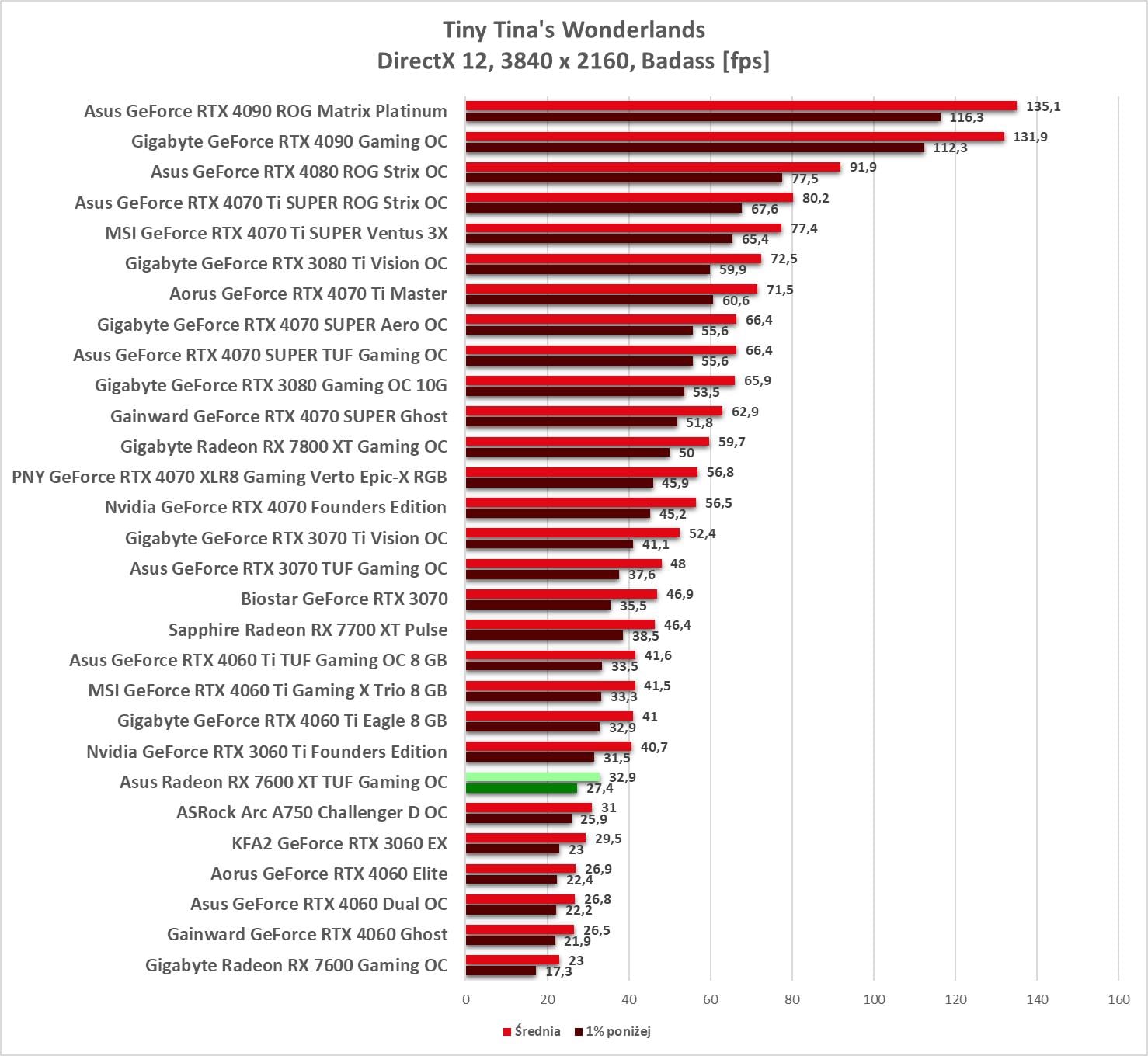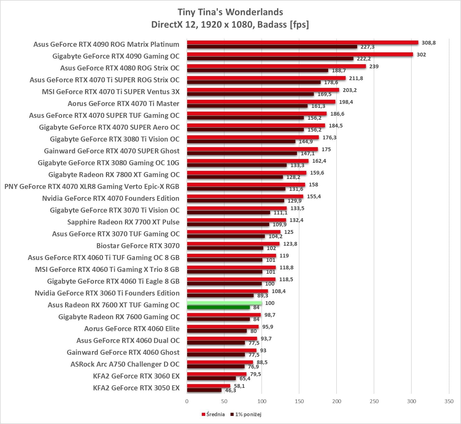 Test Asus Radeon RX 7600 XT TUF Gaming OC – podsumowanie