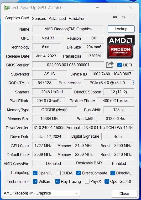 - Radeon RX 7600 XT: AMD Adrenalin 23.40.01.15