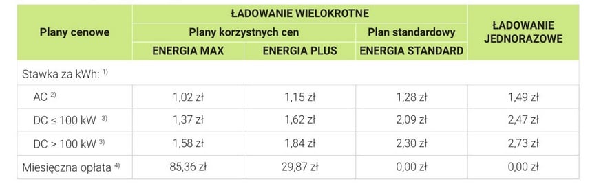 W przypadku stacji GreenWay, koszt ładowania przy wspomnianym wcześniej abonamencie wyglądał następująco: