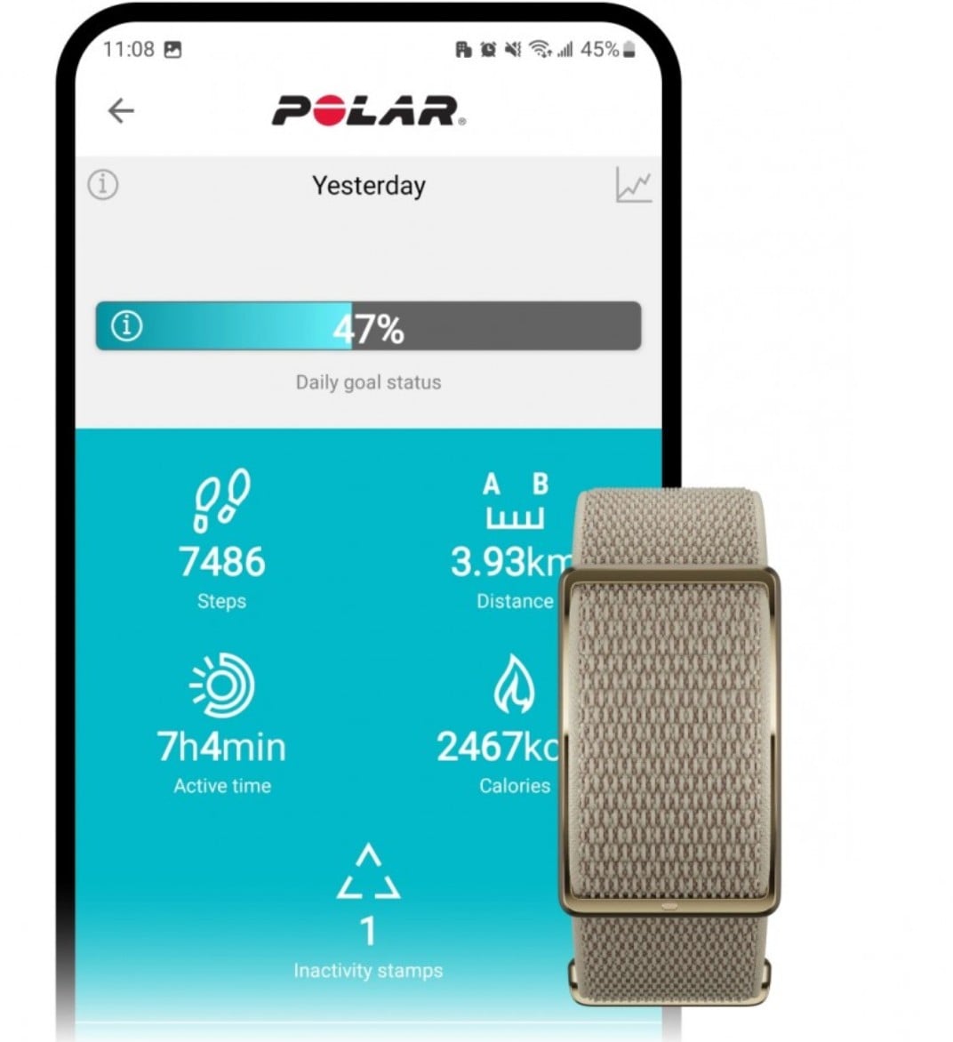 Widzicie tę metalową klamrę? Została ona wykonana ze stali nierdzewnej i to właśnie w niej ukryto precyzyjny czujnik Precision Prime, który monitoruje najważniejsze parametry organizmu, takie jak tętno, aktywność, jakość snu i regenerację. Opaska automatycznie śledzi kroki, aktywność fizyczną i sen. Według producenta, jedno ładowanie wystarczy na 8 dni pracy. A co najlepsze, wszystkie dane synchronizują się z bezpłatną aplikacją Polar Flow dostępną na Androida i iOS.