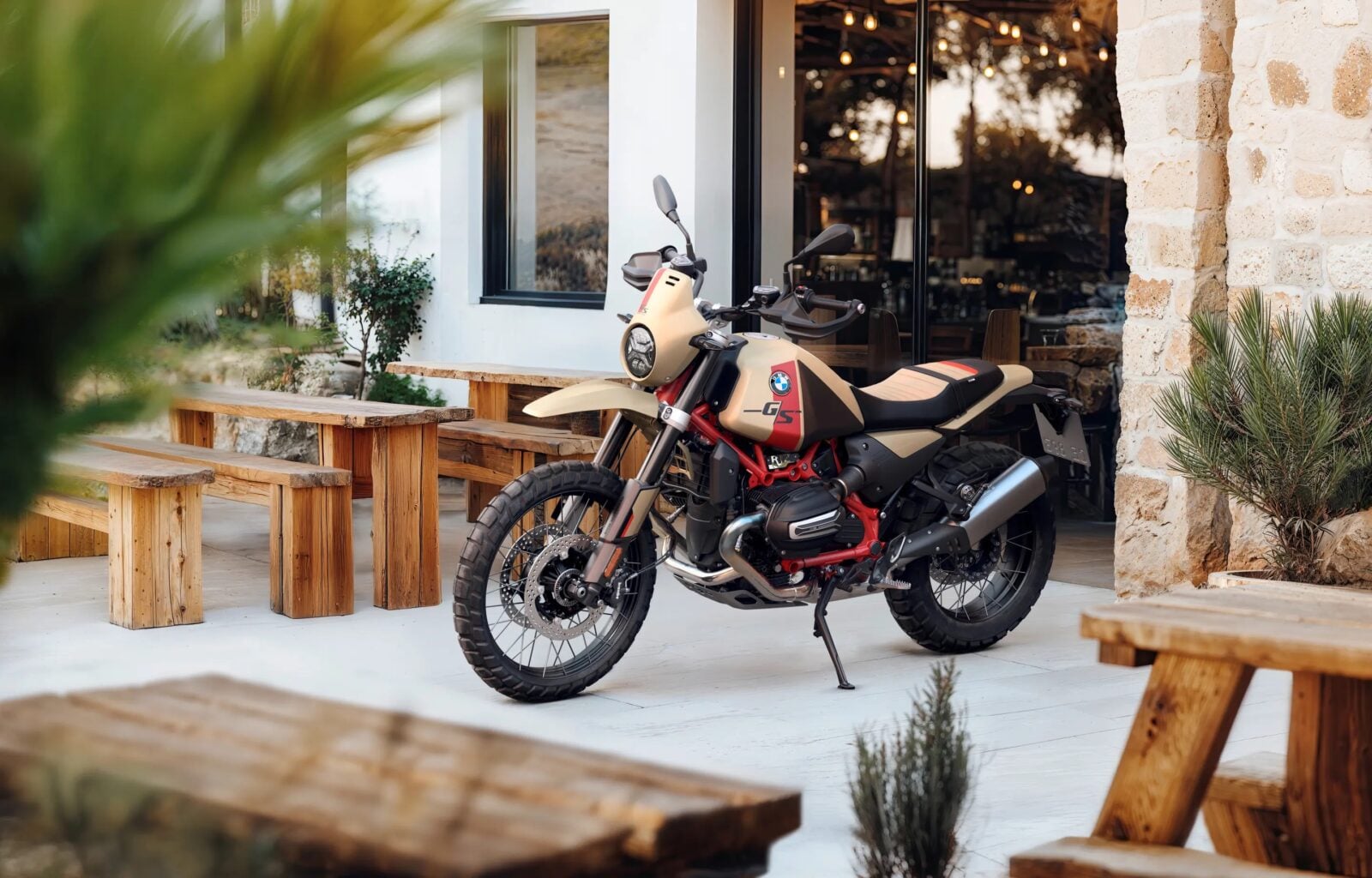 R 12 G/S został zbudowany na platformie roadstera BMW. Choć na pierwszy rzut oka, jego sylwetka wywołuje natychmiastowy zastrzyk nostalgii, to w rzeczywistości w jego wnętrzu skrywa się całkowicie nowoczesna maszyna. Ale po kolei. R 12 G/S napędzany jest sprawdzonym chłodzonym powietrzem/olejem dwucylindrowym silnikiem typu bokser o pojemności 1170 cm3, generującym 109 KM przy 7000 obr./min i 115 Nm przy 6500 obr./min. Silnik sprzężono z sześciobiegową skrzynią biegów i wałem napędowym. Mamy tutaj zatem do czynienia z klasyczną kombinacją dostosowaną do dzisiejszych czasów.