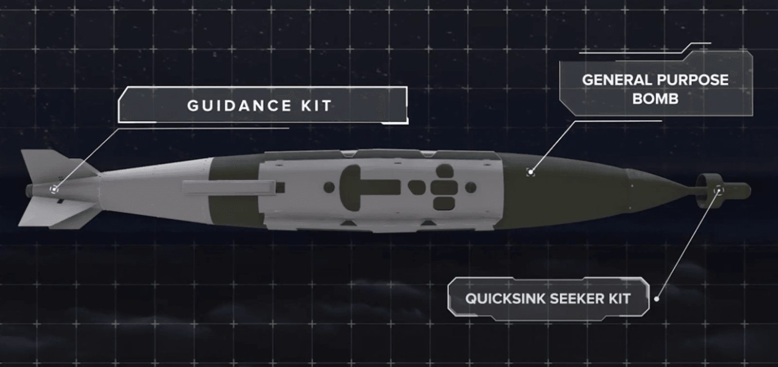 Quicksink, opracowywana przez AFRL Munitions Directorate w bazie lotniczej Eglin na Florydzie, to broń przeznaczona do przenoszenia zarówno przez myśliwce, jak i bombowce. W dużym uproszczeniu, jest to wariant JDAM (Joint Direct Attack Munition), który zamienia “zwykłe” bomby w inteligentną amunicję. Quicksink jest podobny do wariantu dostarczania min morskich w precyzyjne miejsca, z tą różnicą, że ma czujnik laserowy mocowany do dziobu bomby, który pozwala błyskawicznie namierzać statki nawodne (zarówno nieruchome, jak i poruszające się).