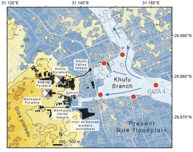 Innymi słowy, korzystne warunki środowiskowe umożliwiły budowę piramid w Gizie, a starożytne ramię rzeki Nil służyło jako żeglowny kanał dla transportu towarów. Nie jest jednak jasne, kiedy i w jaki sposób dokładnie ewoluowały ówczesne krajobrazy. Być może egipscy budowniczowie pogłębili drogi wodne, tworząc kanały i porty. Z pewnością pomocne mogły być w takich okolicznościach coroczne powodzie, które ułatwiały transport materiałów budowlanych wykorzystanych później do stworzenia ikonicznych struktur.