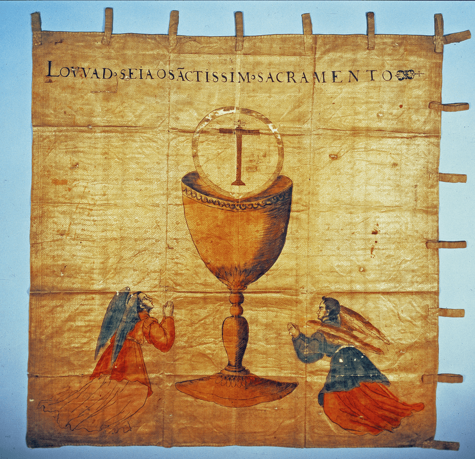 Dzisiejsze wizerunki Hieronima Amakusy (który doczekał się w Japonii kilku pomników, a także został bohaterem mang, anime i gier komputerowych) przedstawiają go zwykle odzianego w eklektyczne połączenie ubiorów japońskich i europejskich. Większa część prezentowanego stroju to szaty samuraja, ale pod szyją młodzieńca pyszni się zazwyczaj elżbietańska kryza, zaś przy jego boku przypasane są samurajskie miecze. Wizja ta nie ma zbyt wiele wspólnego z rzeczywistością, bo zachowane opisy z epoki mówią, iż Hieronim występował w stroju w stylu całkowicie japońskim – tyle że śnieżnobiałym, w dłoni dzierżąc nie broń, lecz charakterystyczną dla kapłanów shinto drewnianą różdżkę obowiązaną papierowymi wstążkami. Wizerunek rzekomego proroka wywodził się więc z tradycji japońskiej, w przeciwieństwie do niesionego za nim sztandaru, ten bowiem, choć wykonany przez Japończyka – katolickiego kaznodzieję i malarza religijnych obrazów Yamadę Emonsaku – był całkowicie europejski i chrześcijański zarówno z wyglądu jak i wyrażanej przezeń treści. Na chorągwi widniała wynurzająca się z kielicha eucharystia, zaś po bokach naczynia klęczeli aniołowie. Całość została podpisana hasłem w języku łacińskim głoszącym Niechaj będzie pochwalony Najświętszy Sakrament.
