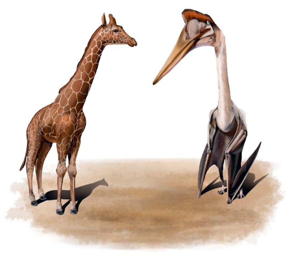 Oczywiście, nigdy nie spotkał żyrafy – dzieli je jakieś siedemdziesiąt milionów lat. Jednak gdyby do takiego spotkania doszło, zwierzęta mogłyby spojrzeć sobie w oczy. Czy potrafisz wyobrazić sobie żyrafę wzbijającą się w powietrze?