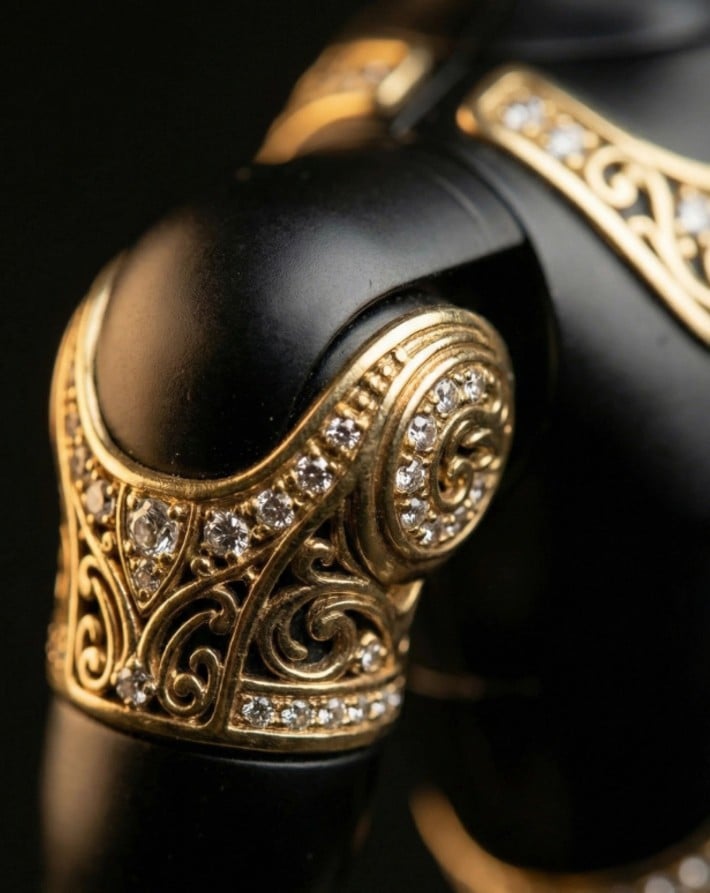 Jak wcześniej wspomniałam, wygląd robota nawiązuje do tradycyjnych wschodnich strojów, takich jak czapan czy kaftan. Zakrzywione linie i ozdobne detale mają imitować ceremonialne szaty noszone niegdyś przez arabską szlachtę. Konstrukcja natomiast jest zdobiona złotymi akcentami oraz inkrustowana drogocennymi kamieniami. Wszystkie te elementy są nanoszone ręcznie przez rzemieślników współpracujących z marką Caviar. Nawet sama nazwa nie jest przypadkowa, to po prostu bezpośrednie odniesienie do znanego nam Aladyna, choć w tej wizji dżinem jest sztuczna inteligencja, która ożywia maszynę, a moc bohatera płynie nie z magii, lecz z technologicznej doskonałości.