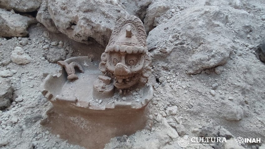 Majański bóg był ukazywany jako postać z dużymi oczami i długim, odwróconym pyskiem. Szczególnie intrygującym elementem był natomiast obiekt wystający z jego czoła, przypominający cygaro. O znalezisku w postaci kamiennej rzeźby poinformował Diego Prieto Hernández, dyrektor generalny INAH (National Institute of Anthropology and History).