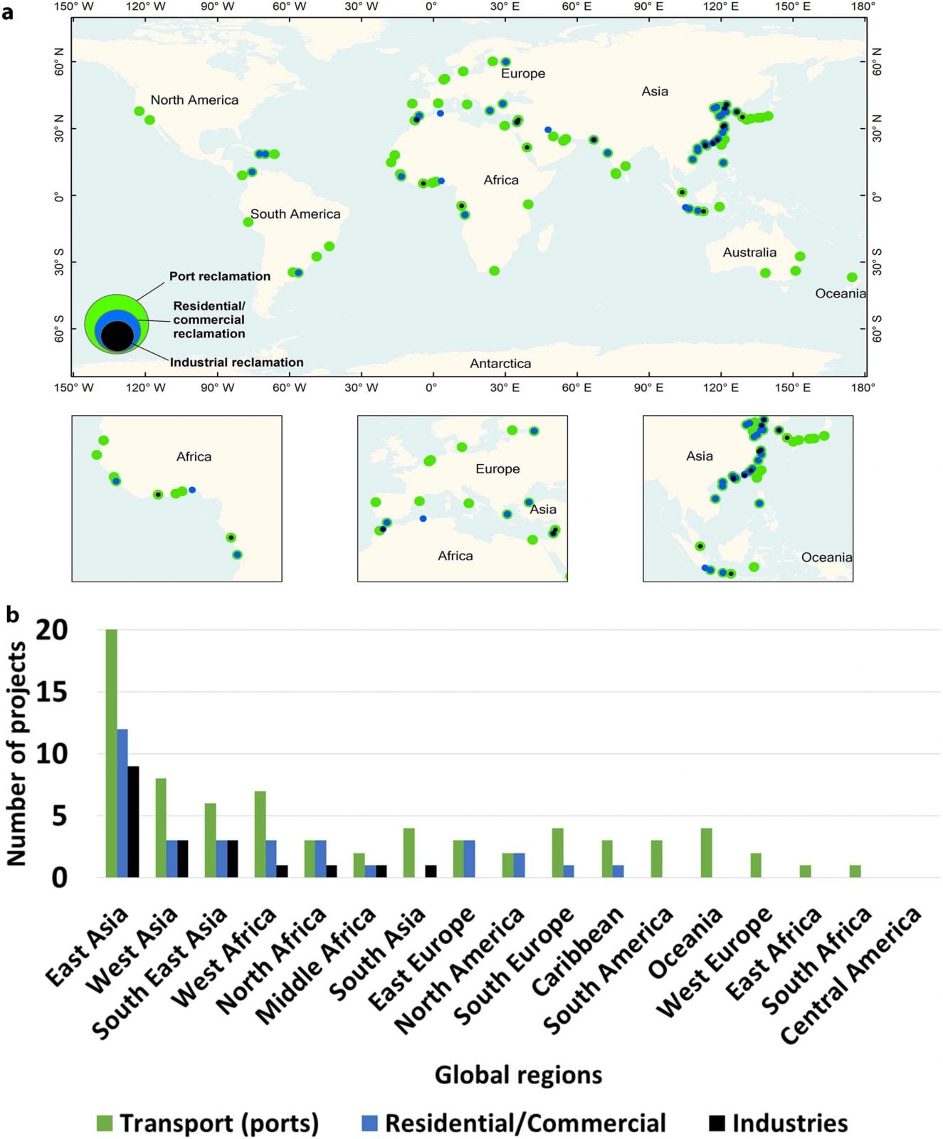 Co ciekawe, nasypywane tereny powstawały głównie w obszarach portowych na potrzeby przemysłu morskiego. Tylko w 30 miastach zbudowano sztuczne lądy celem zasiedlenia ich. A gdzie najwięcej wydarto morzu? Tutaj badacze wskazują na Daleki Wschód (wybrzeże Chin i Japonii), Bliski Wschód (Zjednoczone Emiraty Arabskie) oraz Afrykę Zachodnią.