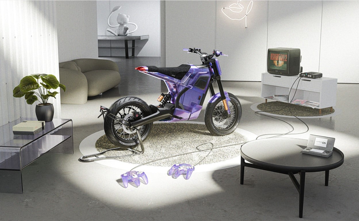 Przezroczysty elektryczny motocykl, który wygląda, jak konsola Nintendo