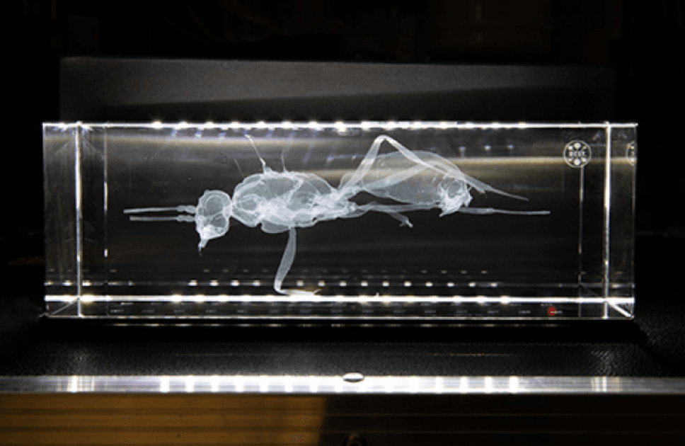Ponieważ mrówki zamknięte w bursztynie, które mają być badane, są bardzo małe i w klasycznej tomografii komputerowej wykazują jedynie bardzo słaby kontrast, przeprowadziliśmy analizy na naszej stacji pomiarowej, która specjalizuje się w mikrotomografii. Dzięki temu otrzymaliśmy stos obrazów, które w zasadzie pokazywały badaną próbkę plasterek po plasterku.