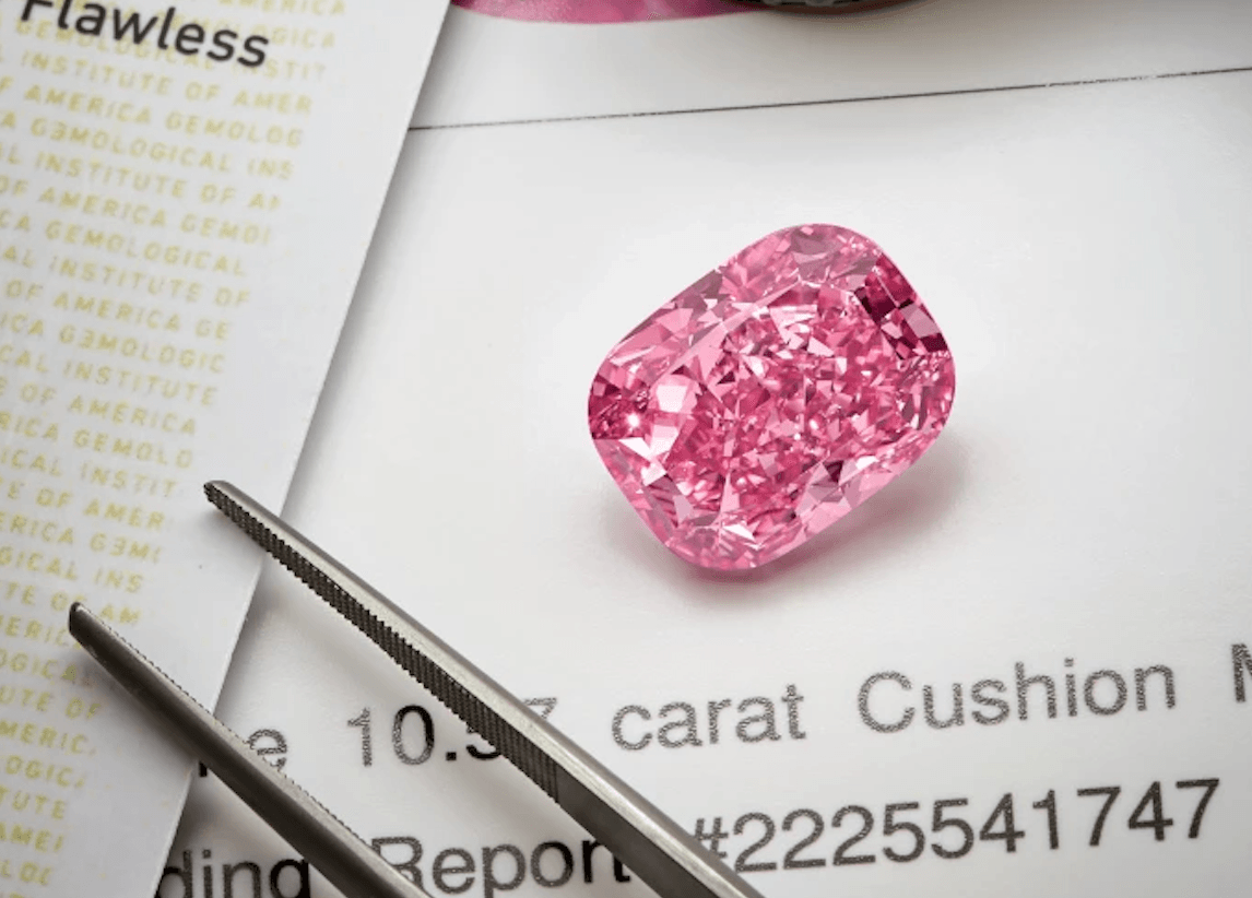 Eternal Pink to 10,57-karatowy diament, o którym mówi się, że ma “nieskazitelną” przejrzystość. Wydobyty w 2019 r. w kopalni Damtshaa w Botswanie, diament został od tego czasu oszlifowany w “poduszkę” i osadzony w pierścionku. Oprócz wysokiej jakości, jego cechą wyróżniającą jest niewątpliwie elektryczny różowy kolor, określany mianem “bubblegum”.