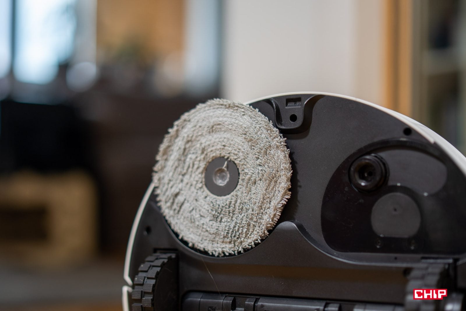 W dolnej części mamy garaż dla robota oraz miejsce czyszczenia i suszenia podkładek mopa. Sam odkurzacz w dużym stopniu nie różni się od większości konstrukcji obecnych na rynku. Wystający czujnik Lidar na górze, amortyzowany przód, szczotka boczna, wyjmowany pojemnik na kurz, amortyzowane koła, ale wyróżniającym elementem jest ruchome mocowanie podkładek mocujących. Do czego jeszcze będziemy wracać.