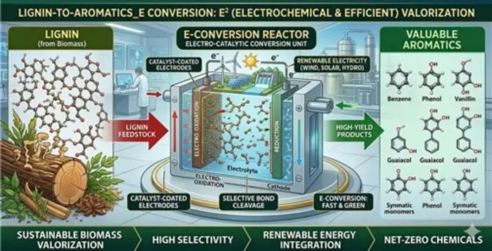 Lignina jest najbogatszym w węgiel składnikiem drzewnej biomasy i dlatego od dawna uchodzi za kuszące źródło odnawialnych związków aromatycznych, czyli takich, które dziś przemysł chemiczny chętnie bierze z ropy. Problem polega na tym, że jej struktura jest nieregularna, złożona i pełna mocnych wiązań C–O oraz C–C. To nie jest materiał, który oddaje swoje składniki lekko i elegancko. Zwykle trzeba go było atakować w warunkach energochłonnych, a wtedy łatwo było stracić selektywność i dostać mieszaninę mniej użyteczną, niż obiecywała teoria.