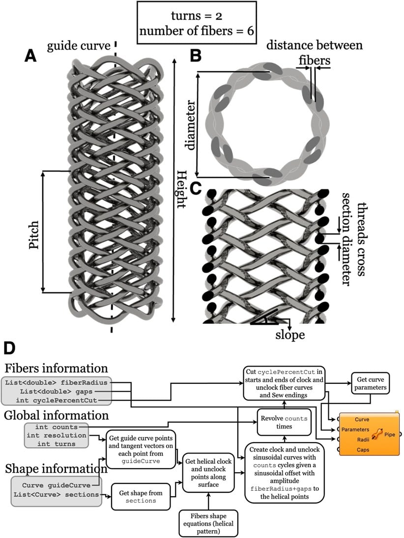 Autorzy mówią wprost o algorytmicznym podejściu do projektowania przeplatanych metamateriałów. To istotne, bo nie chodzi tu o jeden “ładny kształt” wygenerowany ręcznie, tylko o metodykę, którą da się przenieść na różne topologie i ścieżki prowadzenia splotu. W praktyce powstały dwie główne rodziny konstrukcji: kratownice rurowe oraz cylindryczne struktury o charakterze “tkania”.