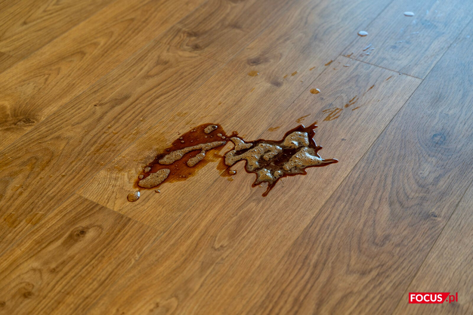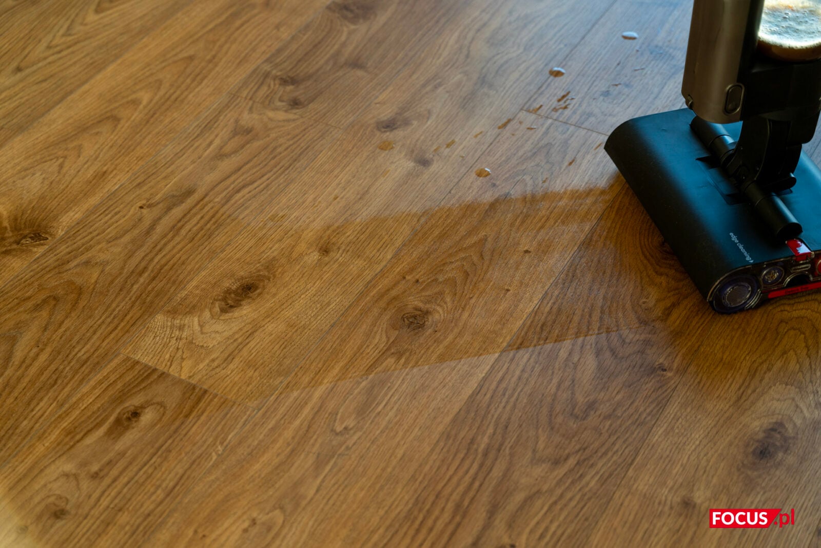 A co z usuwaniem plam? Zrobię Wam mały pokaz slajdów. Plama ze świeżo wylanej kawy na panele winylowe zniknęła po jednym przeciągnięciu mopem na drugim z trzech poziomów intensywności dozowania wody.