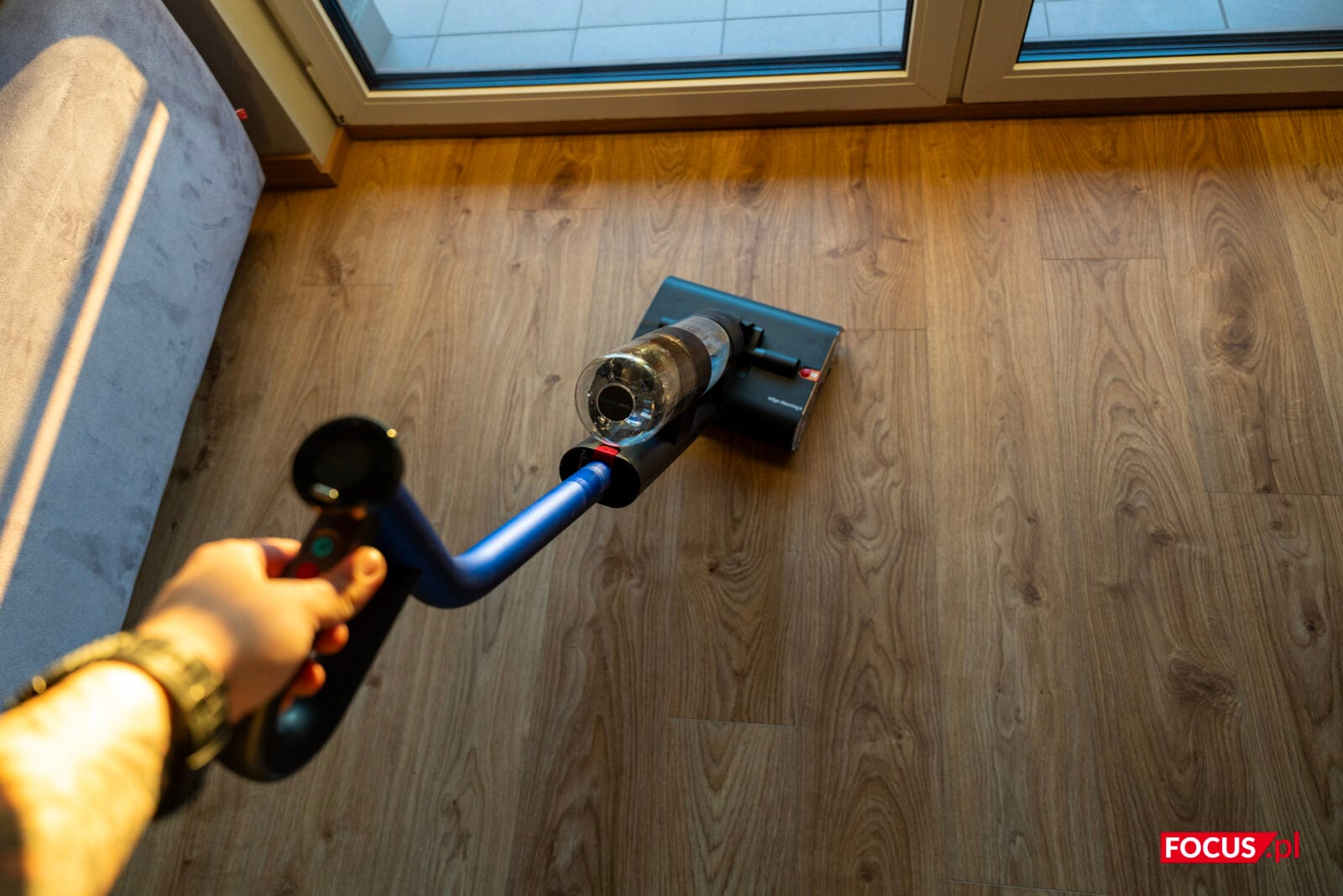 Część mopująca jest zwrotna, a dzięki składanej rączce można łatwiej wjechać Dysonem pod meble. Oczywiście te odpowiednio wysokie, bo podstawa jest mimo wszystko sporej wysokości. Ale już mopowanie pod stołem czy biurkiem jest znacznie prostsze.