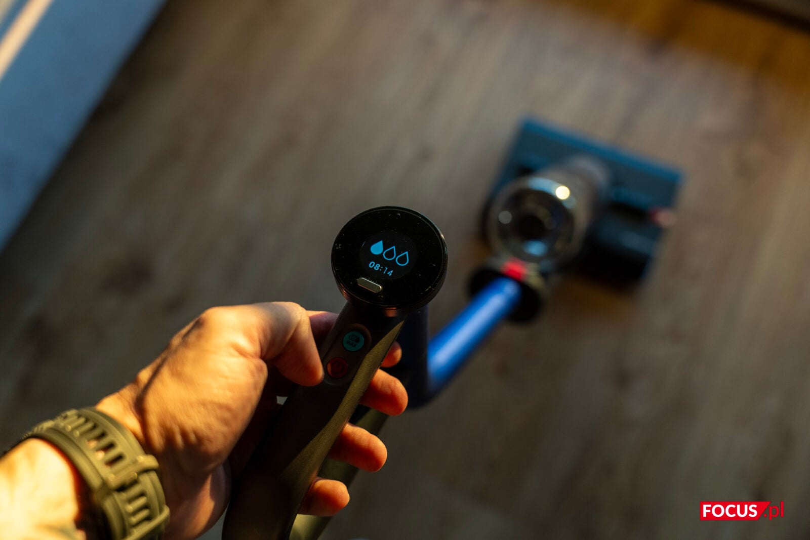 Czy DysonG1 jest prosty w obsłudze? Nie mamy tu w zasadzie żadnych dodatkowych funkcji poza mopowaniem, więc jak najbardziej. Jedyne, co możemy zmodyfikować to wybrać jeden z trzech poziomów dozowania wody, ewentualnie tryb boost włączamy poprzez przytrzymanie przycisku. Samo poruszanie się z mopem nie jest ciężkie i osoby starsze lub słabsze fizycznie powinny sobie z tym bez problemu poradzić.
