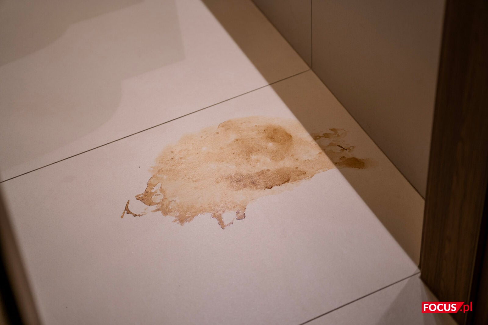 Zaschnięta plama z kawy na płytkach. Tutaj już trzeba było wykonać kilka ruchów, ale plama zniknęła po maksymalnie 15 sekundach pracy.