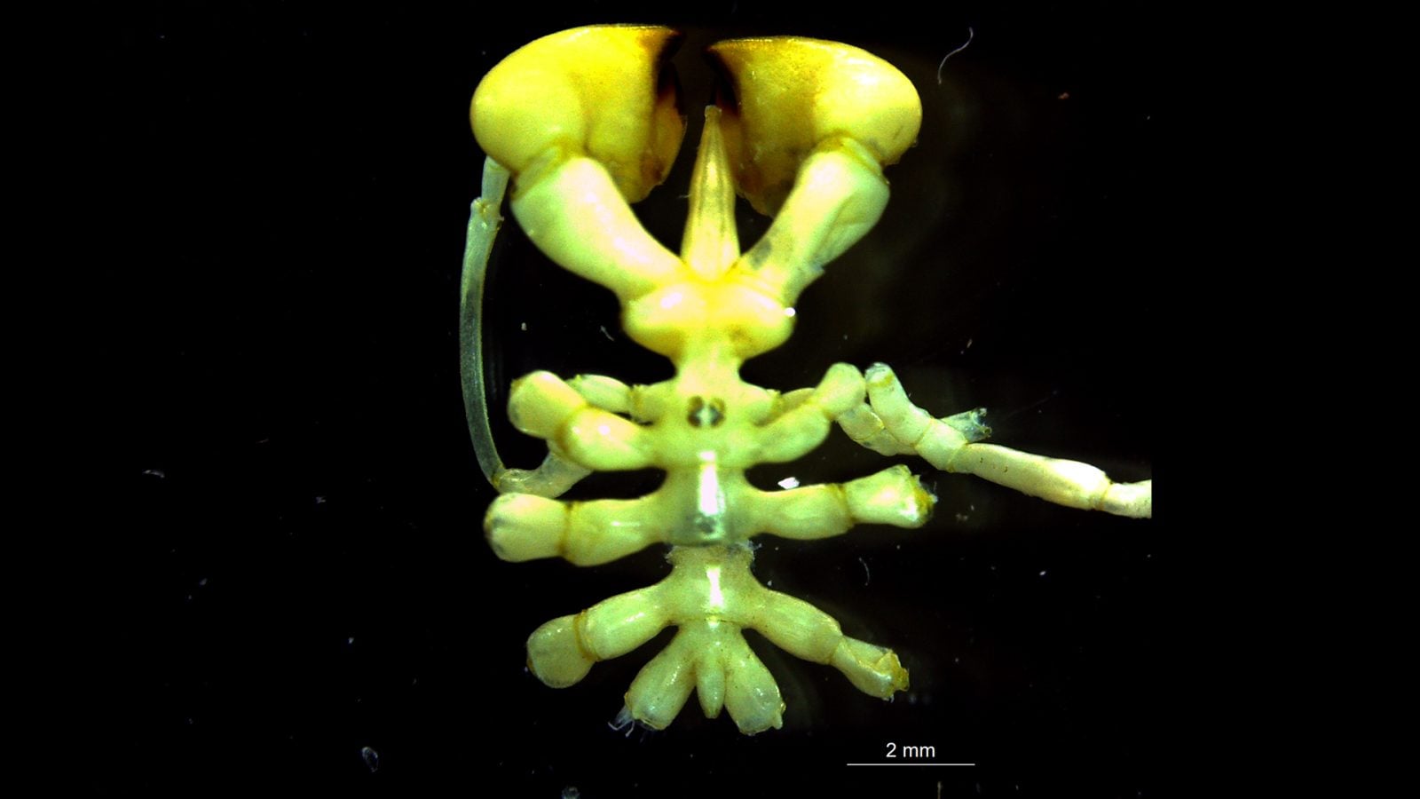 Dziwne, żółte stworzenie przypominające pająka z czterema prawie czarnymi oczami i dużymi, bulwiastymi odnóżami zostało wyciągnięte z głębin oceanu u wybrzeży Antarktydy.