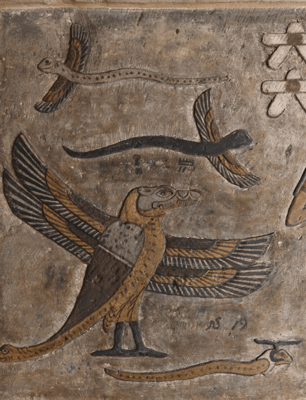 Oprócz znaków zodiaku i konstelacji gwiazd, podczas renowacji ujawniono także kolorowe wizerunki węży, krokodyli i innych bestii, w tym węża z głową barana i ptaka z głową krokodyla, ogonem węża i czterema skrzydłami. Nie wiadomo, co dokładnie symbolizowały. Podobnie jest ze znaczeniem nieznanych wcześniej inskrypcji.