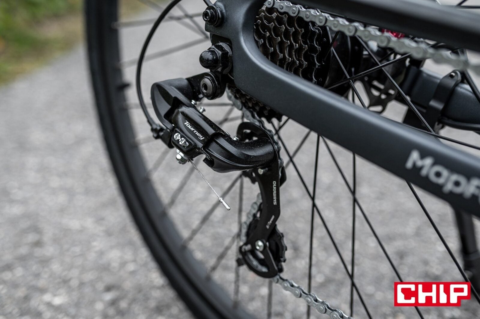 Na koniec zostawiłem coś specjalnego dla tych, którzy wolą maksymalną lekkość i nowoczesne detale. ENGWE Mapfour N1 Air wyróżnia się ramą z włókna węglowego z wewnętrznym prowadzeniem kabli, katalogową masą 15,6 kg i napędem pod czujnik momentu. Akumulator Samsunga 36V/10 Ah (360 Wh) wpisuje się w miejskie widełki zasięgu, zapewniając realnie 40-80 km, choć jest to naturalnie zależne od stylu jazdy i warunków. Wspomaganie działa z kolei do 25 km/h, więc przy rozsądnym wspomaganiu się 7-biegową przerzutką, na prędkość ewidentnie nie będziecie narzekać.