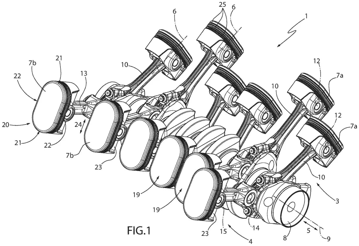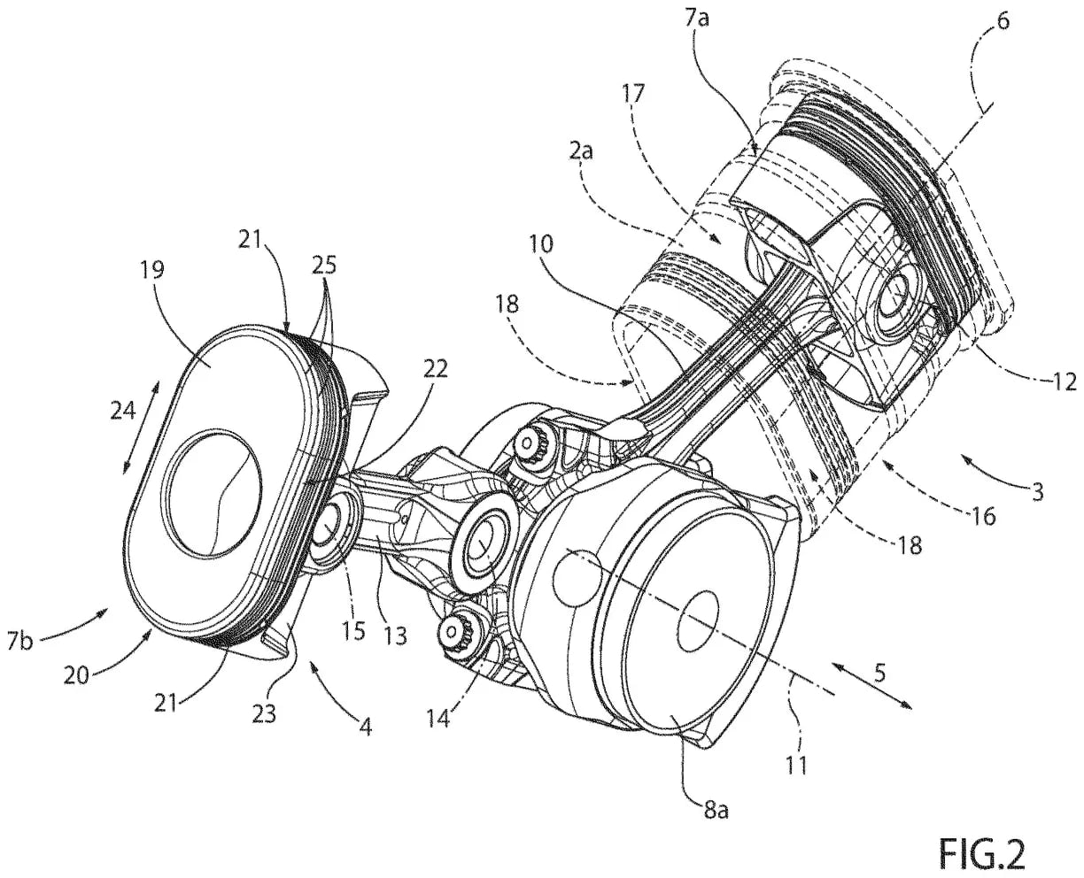 Patent opisuje unikalne podejście do konstrukcji mechanicznej: dwa tłoki współdzielą jedno łożysko wału korbowego i są ustawione naprzeciw siebie. To rozwiązanie upraszcza produkcję, zmniejsza tarcie i może zwiększyć efektywność spalania. Dzięki temu możliwe jest nie tylko osiąganie wyższych mocy przy mniejszym zużyciu paliwa, ale również poprawa dynamiki pracy jednostki.