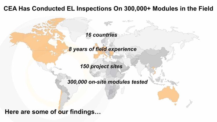 W przypadku ponad połowy lokalizacji w modułach znaleziono niepożądane substancje bądź stwierdzono wady szkła od ogniwa do krawędzi. Z kolei wyniki dotyczące 45% lokalizacji wykazały występowanie plam na szkle oraz wad obudowy. W 41% przypadków komplikacje odnosiły się do drutów naciągowych oraz defektów międzykomórkowych.