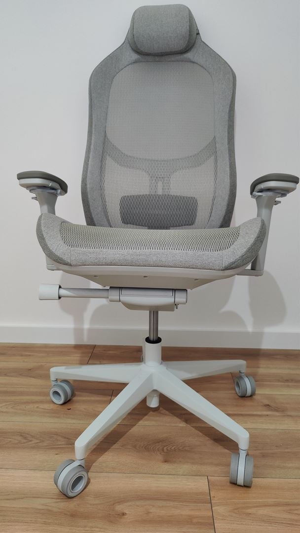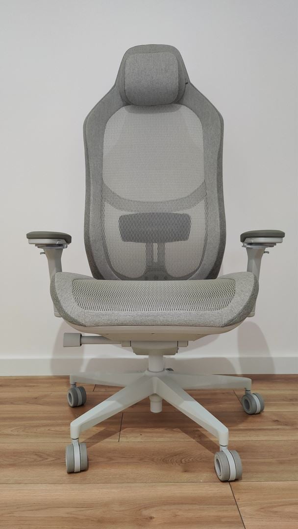 Zacznijmy może od tego, że sama konstrukcja fotela bardzo, ale to bardzo utrudnia utrzymanie go w czystości. Jest to możliwe, ale bardzo czasochłonne ze względu zwłaszcza na siatkę siedziska, przez którą drobinki kurzu wpadają na niedostępną normalnie powierzchnię. To jednak wada dręcząca każdy fotel z siatką, której nie da się wyeliminować racjonalnymi środkami. Producent powinien zadbać o lepiej rozwiązaną kwestię oparcia w odcinku lędźwiowym, bo choć sam pomysł z regulacją wysokości i wysunięcia oparcia wyżłobionego w dolinę jest godny pochwały, tak brak blokady na konkretną wysokość powoduje, że oparcie zwyczajnie opada samo z siebie, co ma miejsce zwłaszcza na skrajnym ustawieniu. Dodatkowo zauważyłem również, że rama fotela cicho poskrzypuje zarówno przy nacisku, jak i bujaniu się, a na dodatek nie jest idealnie dopasowana do materiałowego obicia, czego efektem są łatwo dostrzegalne luki. To zresztą moja największą obawa co do tego fotelu, bo o ile jestem pewny, że siatka łatwo się nie zużyje, fenomenalne kółka o bardzo niskim oporze toczenia posłużą długo, a podłokietniki czy oparcie nie złamią się pod obciążeniem, tak skrzypienie fotelu może szybko zacząć dawać się we znaki podczas zwyczajnego użytkowania.